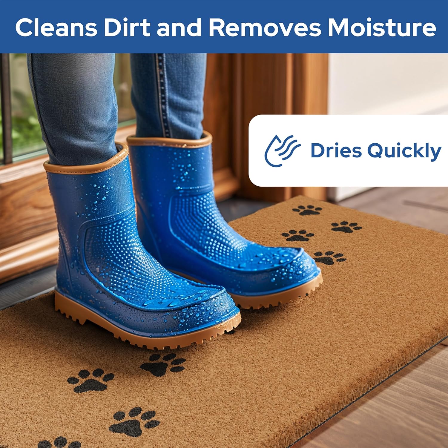 - Versatile - Our Paw Prints welcome doormat outdoor entrances is not only perfect for patios, but also makes a great welcome mat for outdoor events or camping trips. Its durable construction is perfect for cleaning dirt and debris from shoes, and the all-weather coir fibers dry quickly. Use it to welcome guests to your home, cabin, or RV.