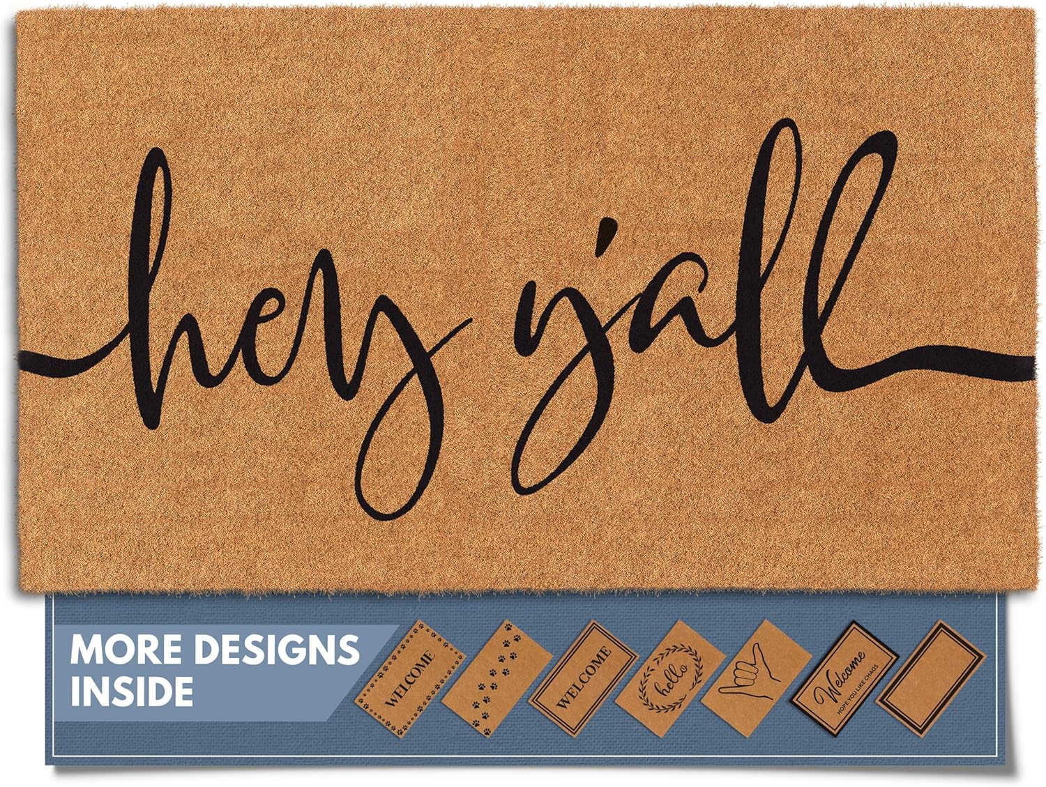 - Versatile - Our Hey Y’all welcome doormat outdoor entrances is not only perfect for patios, but also makes a great welcome mat for outdoor events or camping trips. Its durable construction is perfect for cleaning dirt and debris from shoes, and the all-weather coir fibers dry quickly. Use it to welcome guests to your home, cabin, or RV.