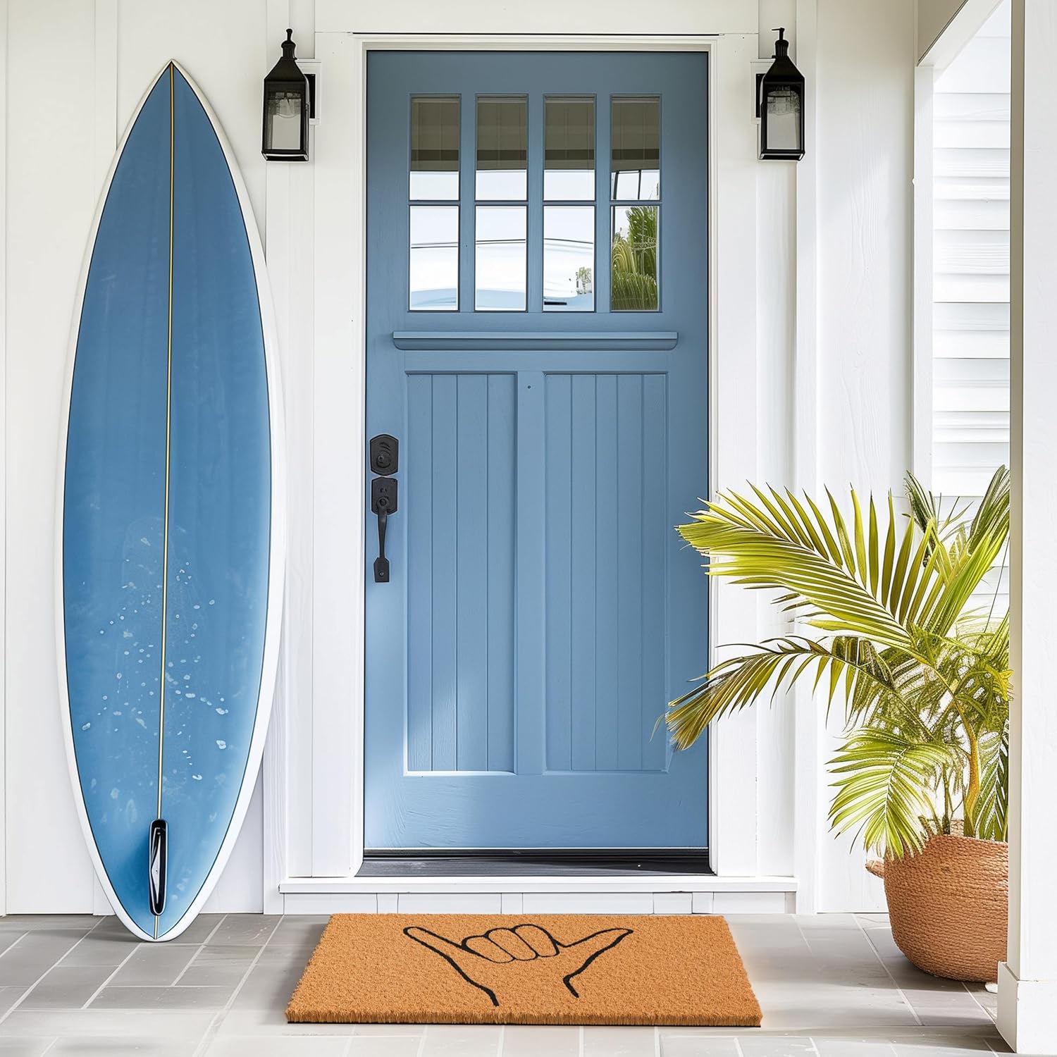 - Say Hello in Style - Welcome guests into your beach house with our eye-catching Shaka Doormat; it’s the perfect indoor or outdoor welcome mat for front door. The surf house doormat’s bold design and large lettering make it impossible to miss, inspiring good vibes at any entryway.
