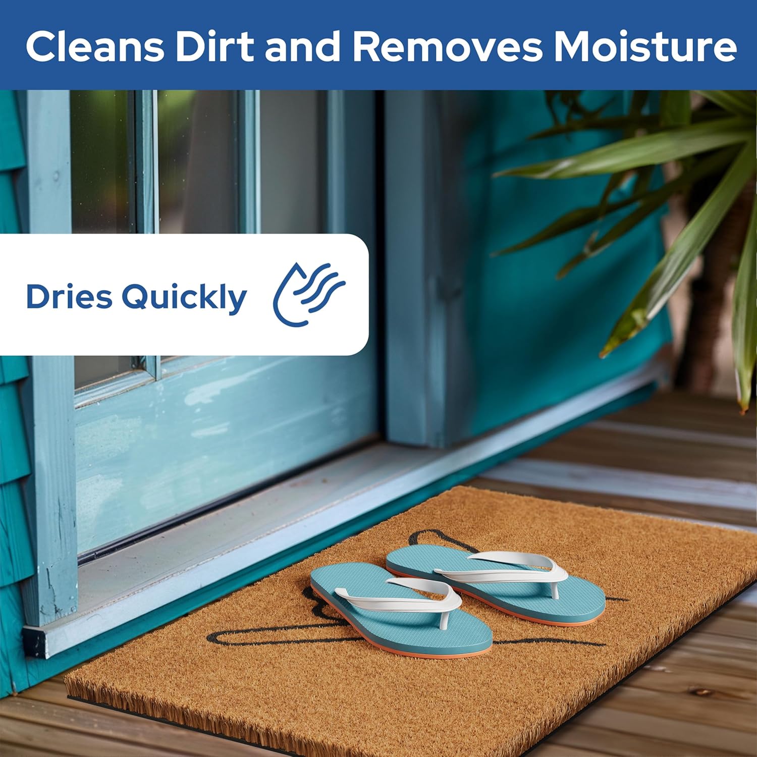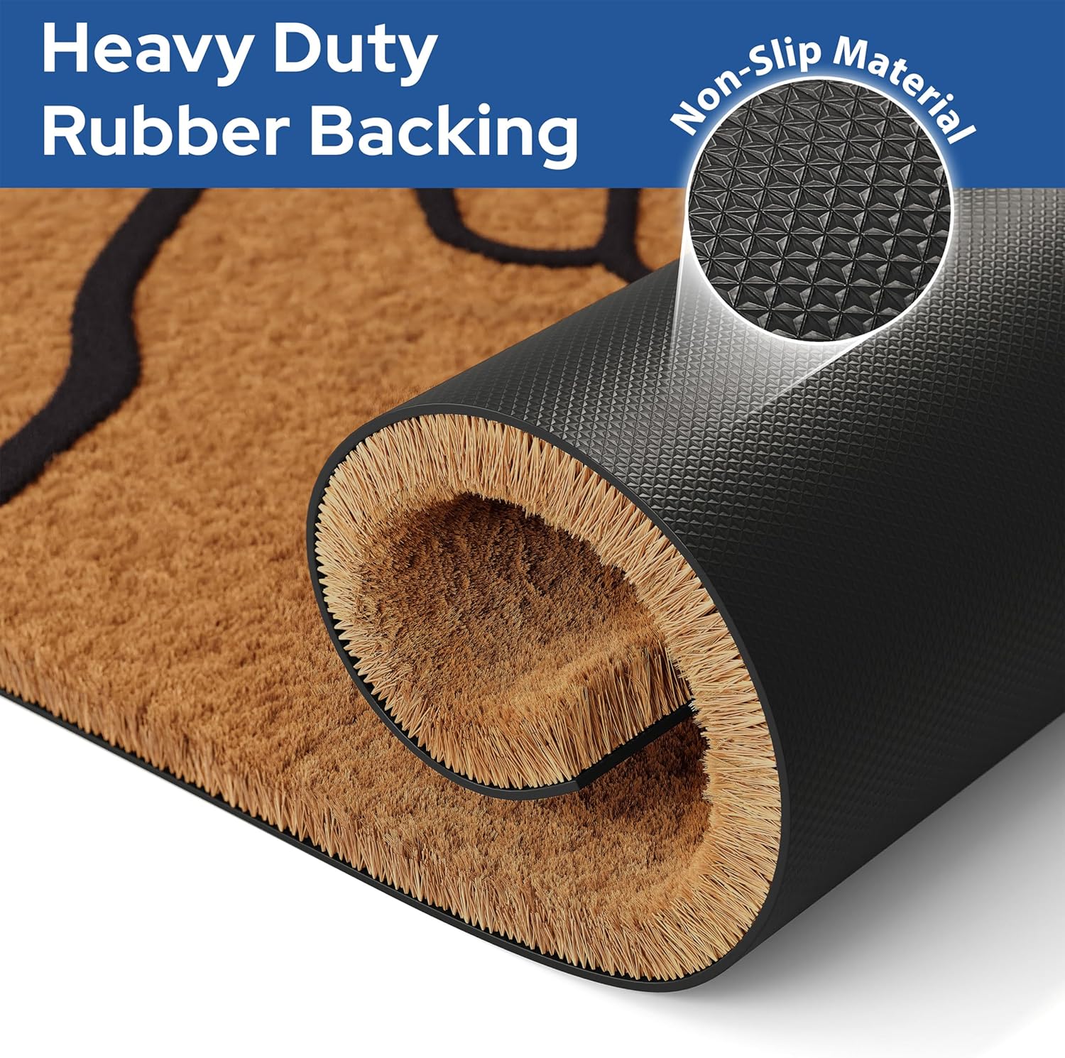 - Slip-Proof - Our non-slip rubber backing keeps the welcome door mat securely in place, preventing slips and falls. Whether you have a concrete, stone, or wooden porch, our exterior door mat outside entrance rug will stay put and keep your visitors safe.