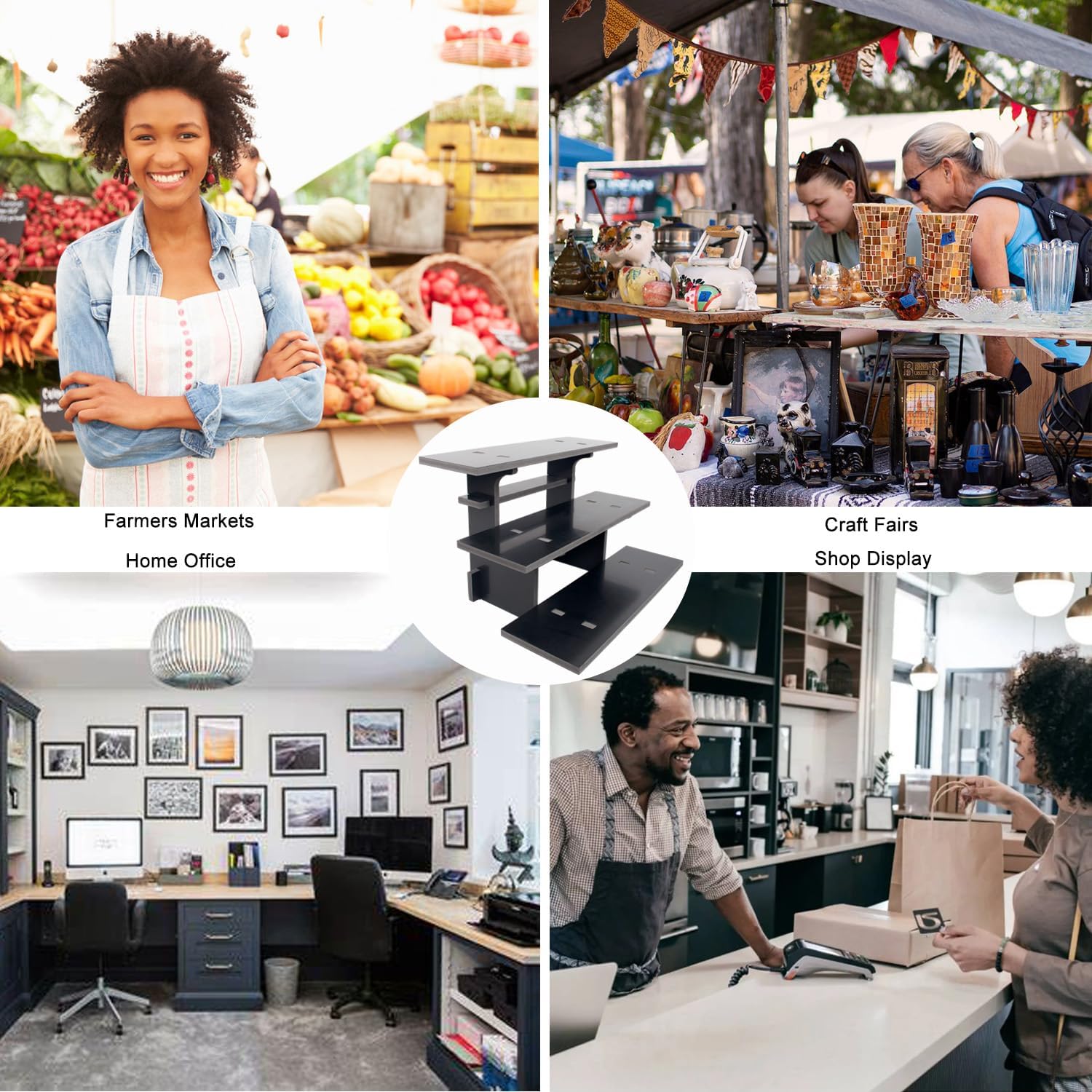 - CUSTOMIZATION FRIENDLY: You can combine corner display and straight display to your desired format, customize to your exact needs this display stand! 1 set of straight display and 2 set of corner display can be combined into a set of 40 inch long 3 tier retail table risers display stands, perfect for farmers markets, craft fairs and pop up shop, vendor booth display items or office and home use!