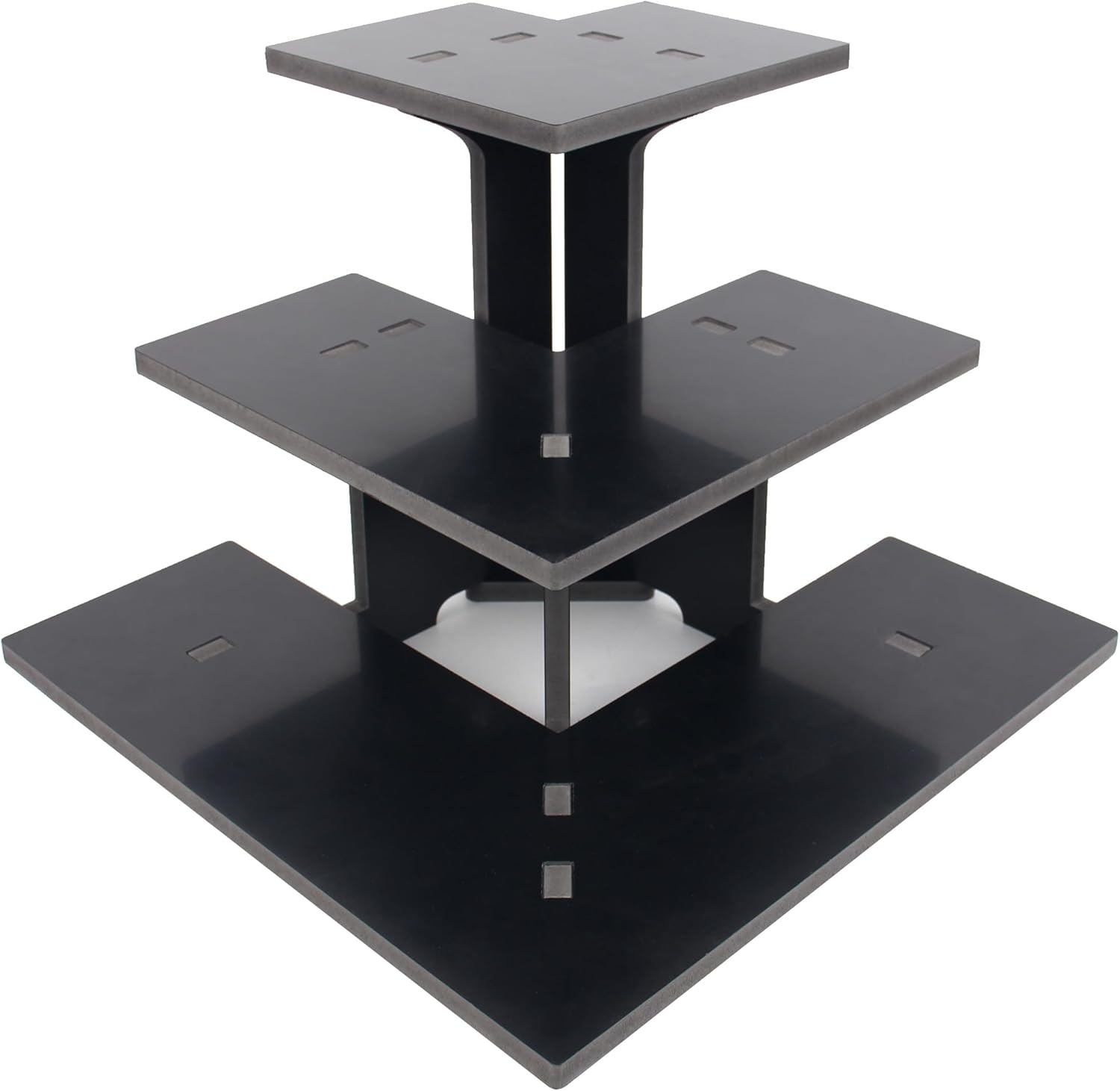 - EASY TO ASSEMBLE: Our portable display rack shelves are precision cut pieces specifically engineered to snap together. It installs quickly without any hardware or tools, and can be assembled/disassembled repeatedly, making it easy to take to farmers markets, craft shows, and trade shows. Our carefully crafted stands make products shine, this black risers display stands size: 13"L x 13"W x 9.5"H.