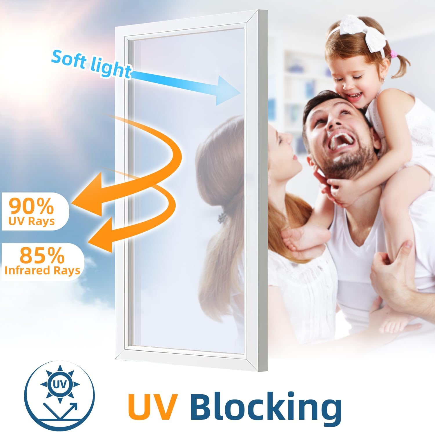 - SUN BLOCKING & UV BLOCKING: Our one way privacy window film not only blocks 82% of UV rays, but also provides soft sunlight. It effectively reduces glare, delays the fading and aging of furniture, and creates a comfortable environment for you and your family.