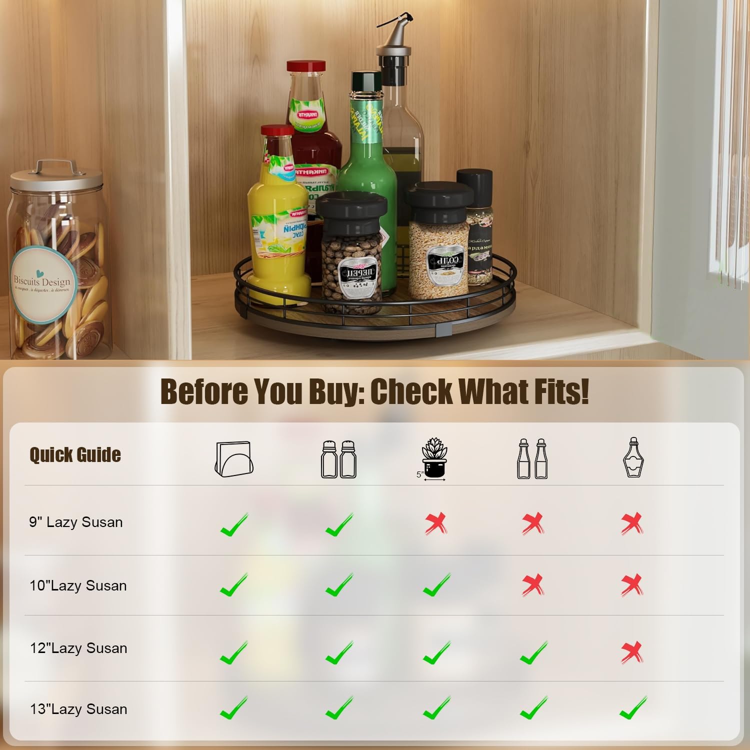 - Exquisite Texture-The lazy susan organizer adopts handmade craftsmanship. Its MDF material is strong and durable, not easy to wear and has no odor. The surface has exquisite texture, creating a unique rustic style