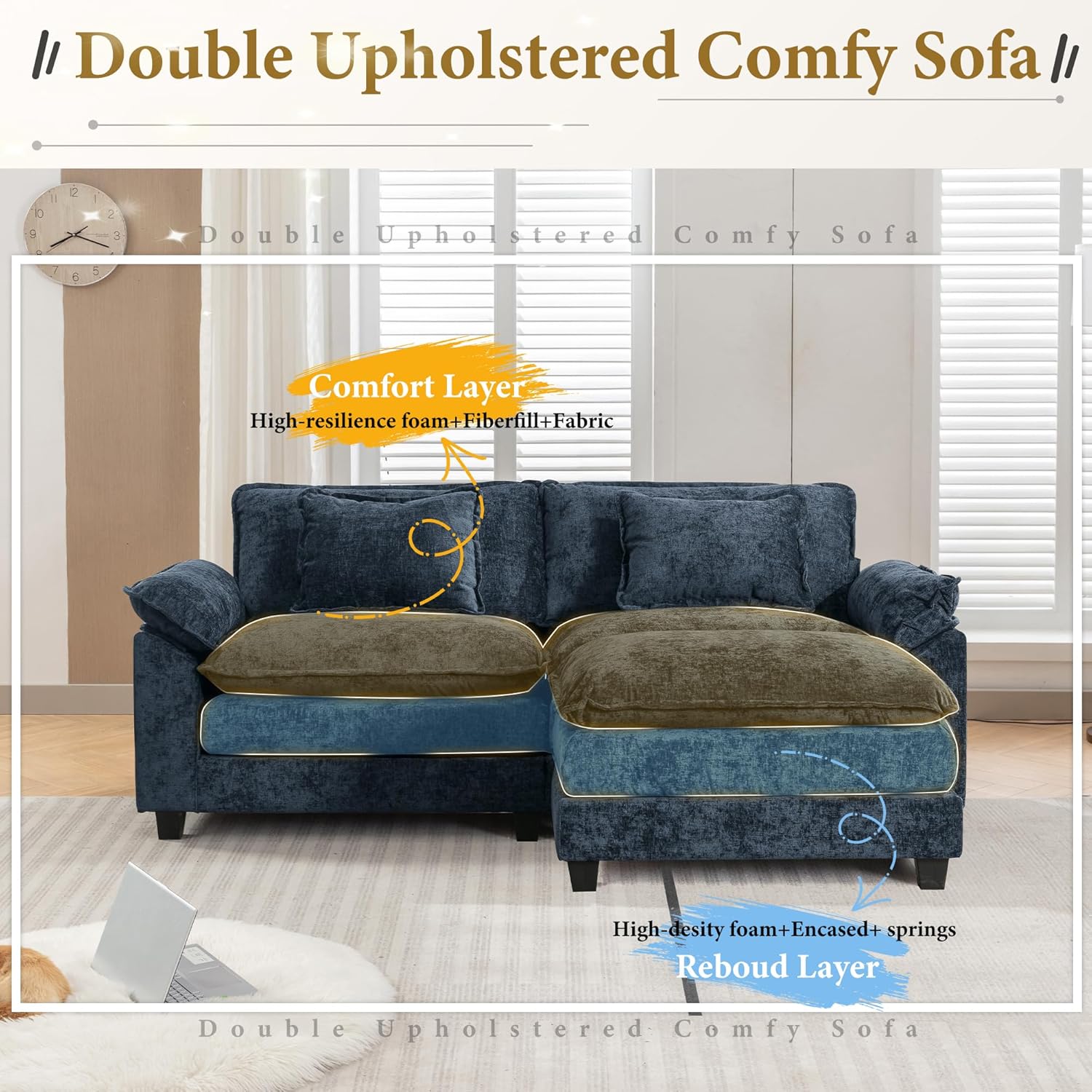 URRED Modular Sectional Sofa Comfy Cloud Couch, Modern Chenille Sofa Sleeper Deep Seat Couches with Ottoman/Pillows for Living Room (Blue, 82.6''- L Shape)