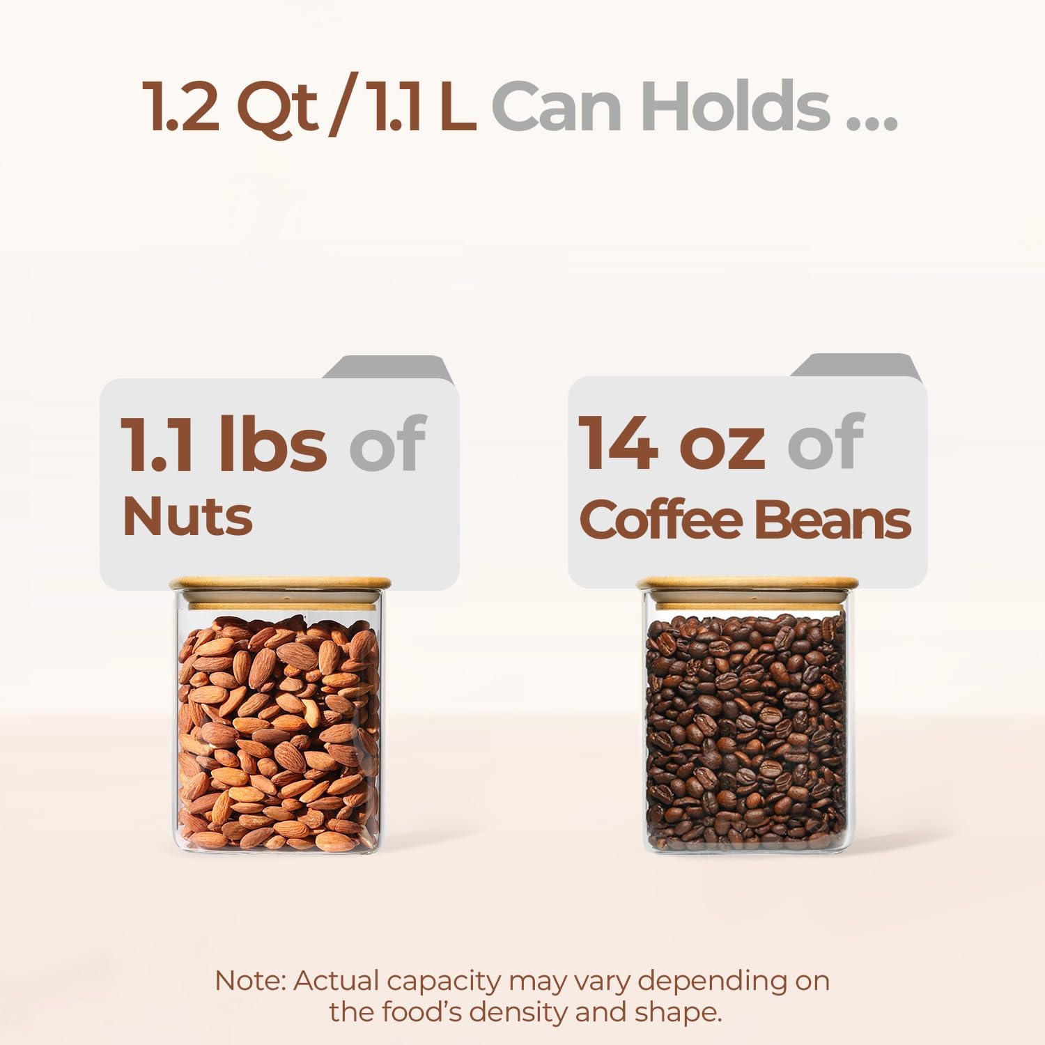 ComSaf 1.2 Qt Rectangle Glass Storage Containers with Lids, Glass Jars with Bamboo Lids, Clear Food Storage Jar, Sugar Coffee Containers, Pantry Container for Pasta Tea Candy Nut