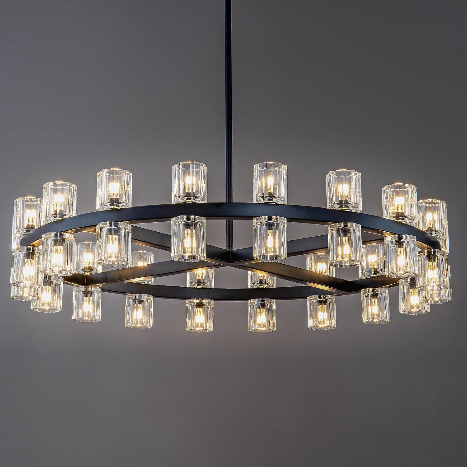 Modern Black Crystal Chandelier,36" K9 Crystal Chandeliers for Dining Room Over Table,Wagon Wheel Chandeliers for Dining Room,Living Room,Foyer,Includes 36XG4 Bulbs