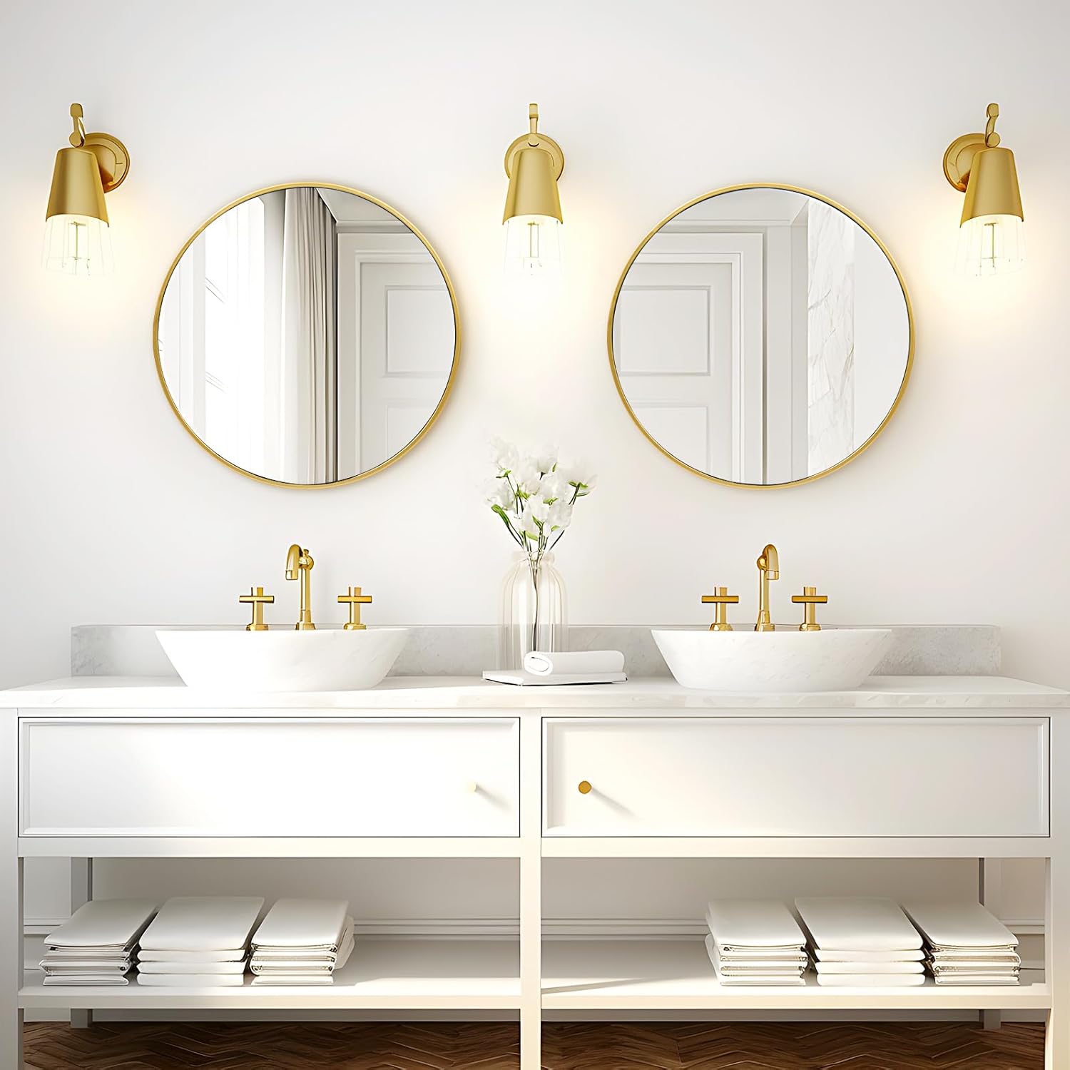 - Perfect Fit Interior Design - Great value and an excellent addition to your guest bathroom, which goes well with country chic inspired guest bathroom. And the simple round mirror is perfect fit for the entry way, bedroom, living room, baby nursery, office, which is a good wall decoration