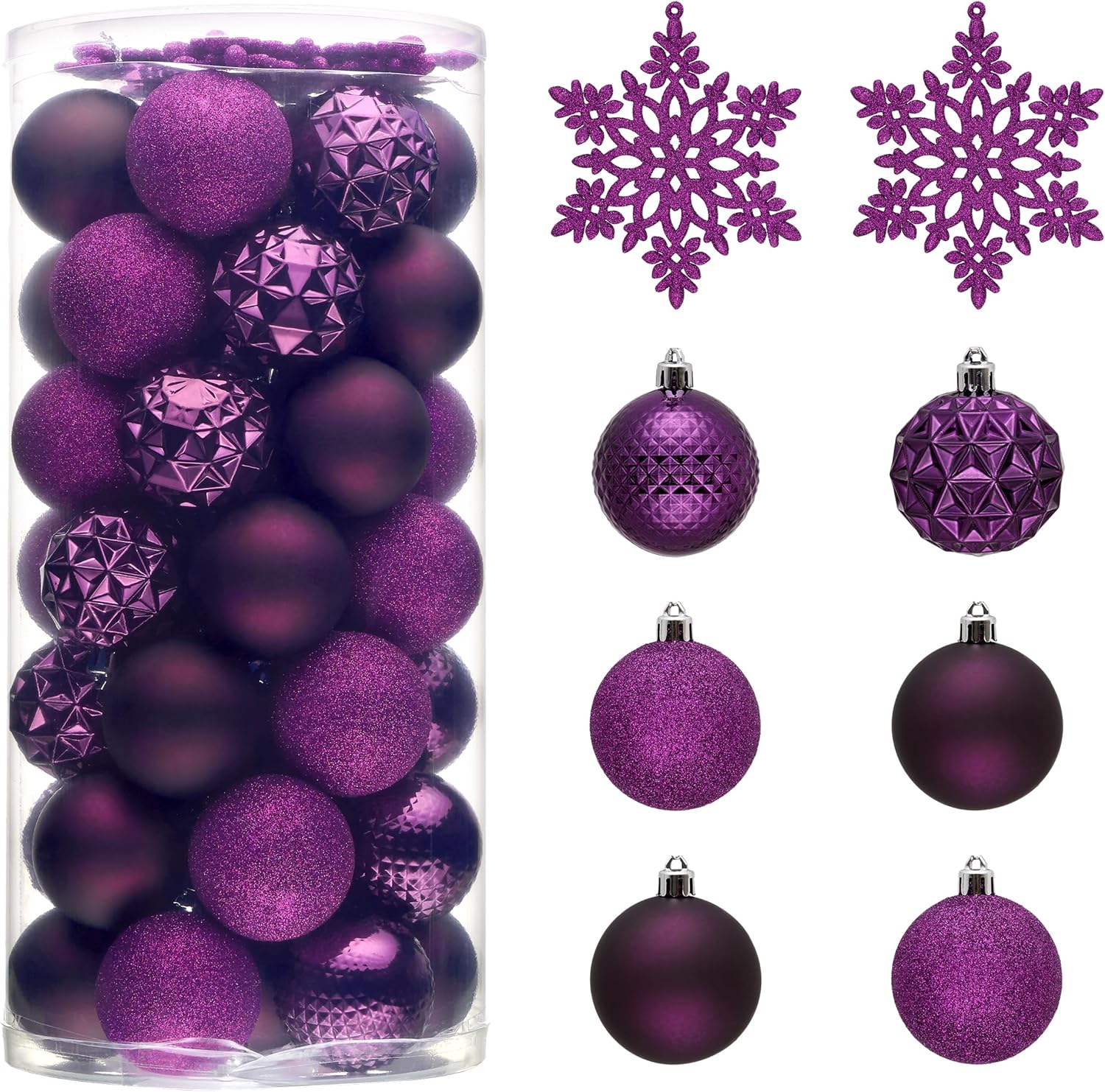 Valery Madelyn Christmas Tree Decorations Ornament Set for Fall Halloween, 50ct 2.36 Inches Purple Shatterproof Christmas Ball Ornaments Hanging Xmas Holiday Party Decor