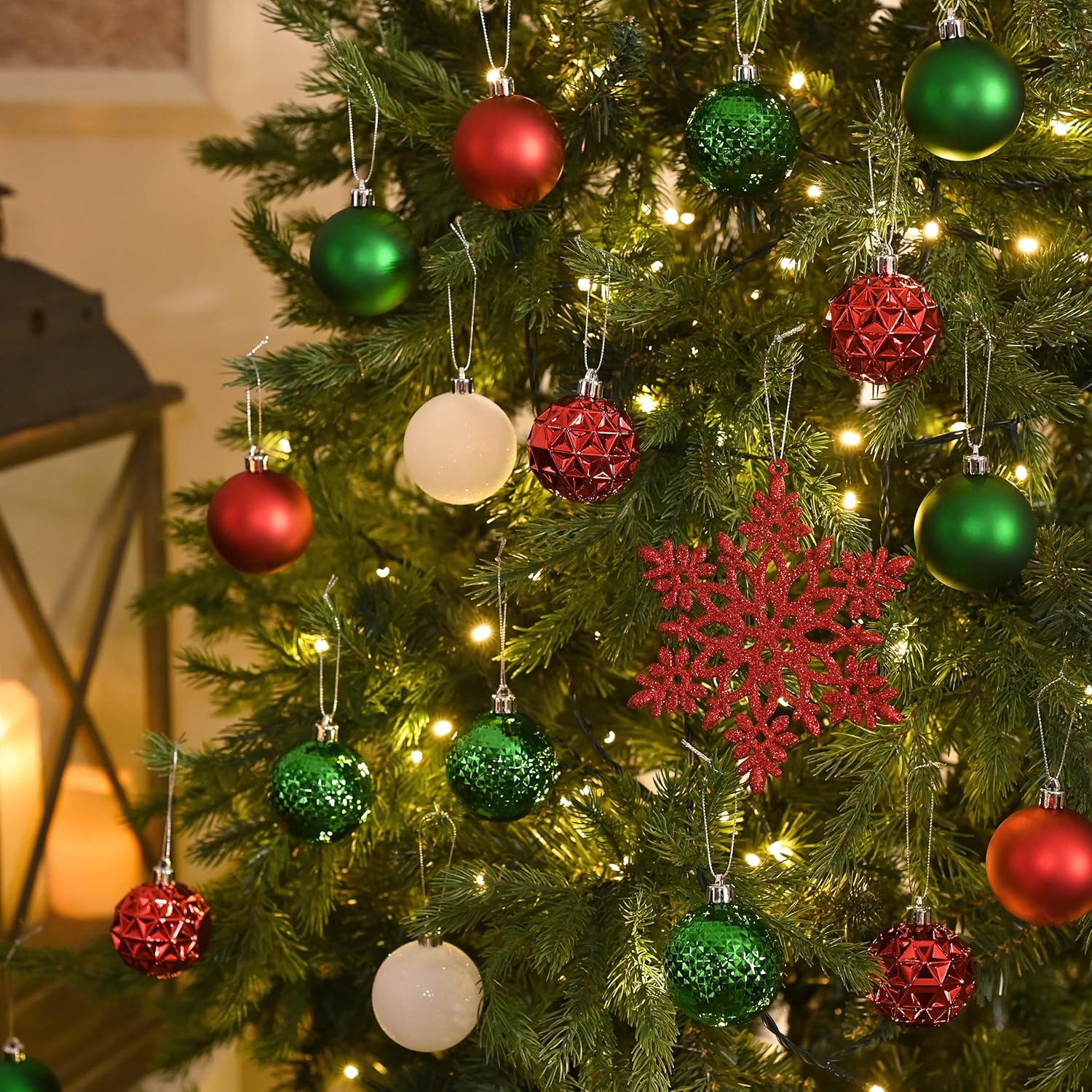 Valery Madelyn Christmas Tree Decorations Ornament Set for Fall Halloween, 50ct 2.36 Inches Red Green and White Shatterproof Christmas Ball Ornaments Hanging Xmas Holiday Party Decor