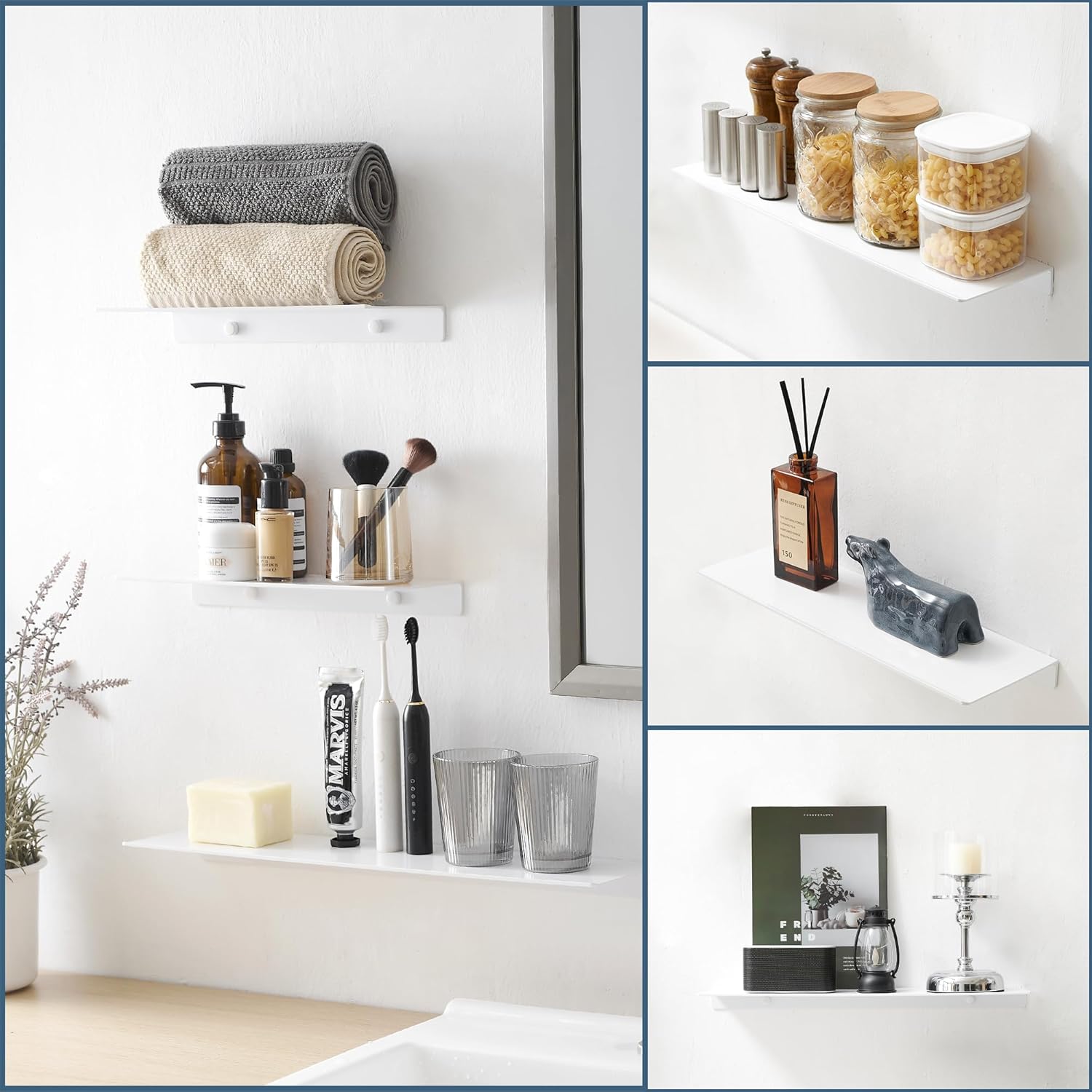 JOOM Metal Floating Shelf - Floating Shelf, Bathroom Shelf, Display Shelves for Wall Storage (White, 8Inch)