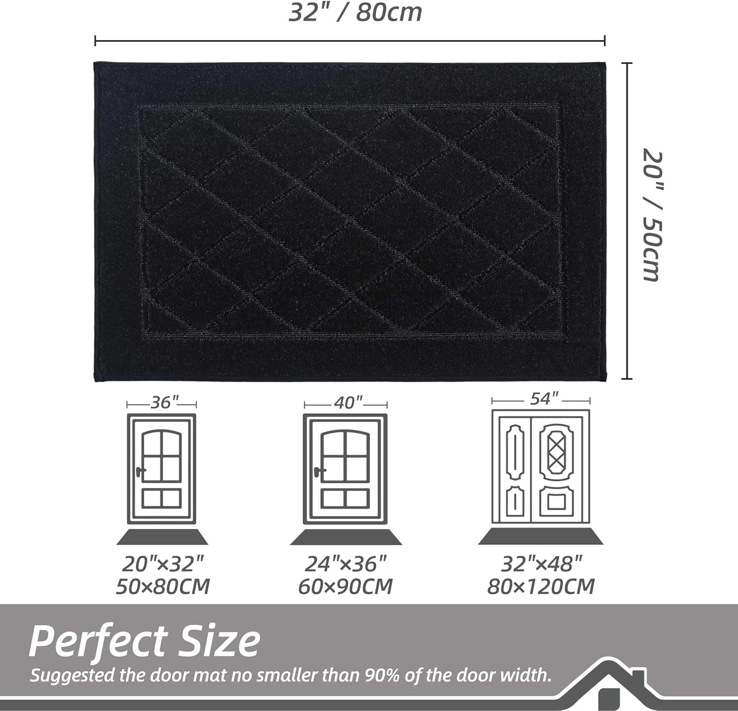 BEQHAUSE Dirt Trapper Door Mat 20" x 32", Doormat Non-Slip Entryway Rugs Washable, Dog Door Mat Stain Resistant and Absorbent Welcome Floor Mat for Front Back Door, Muddy Wet Shoes & Paws, Black