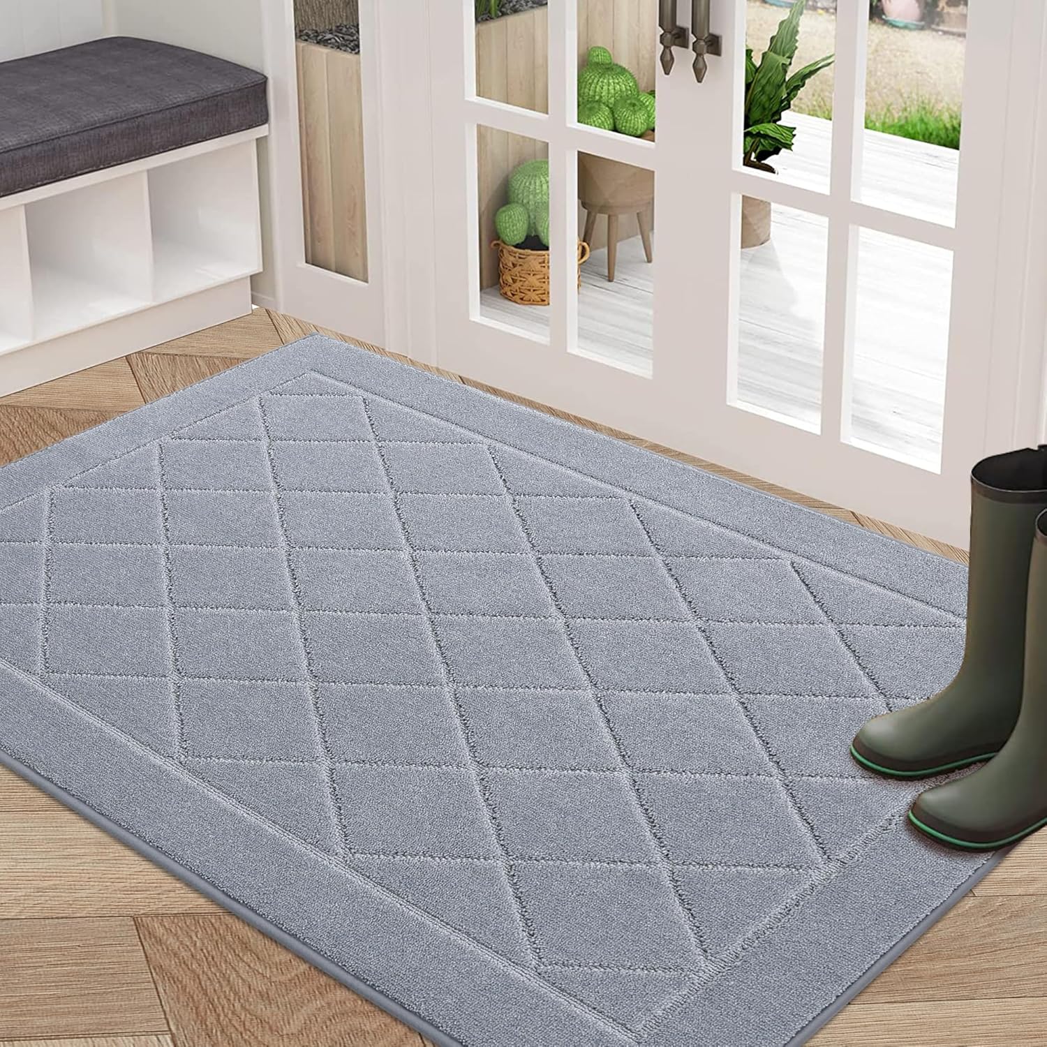 BEQHAUSE Dirt Trapper Door Mat 32" x 48", Doormat Non-Slip Entryway Rugs Washable, Dog Door Mat Stain Resistant and Absorbent Welcome Floor Mat for Front Back Door, Muddy Wet Shoes & Paws, Grey