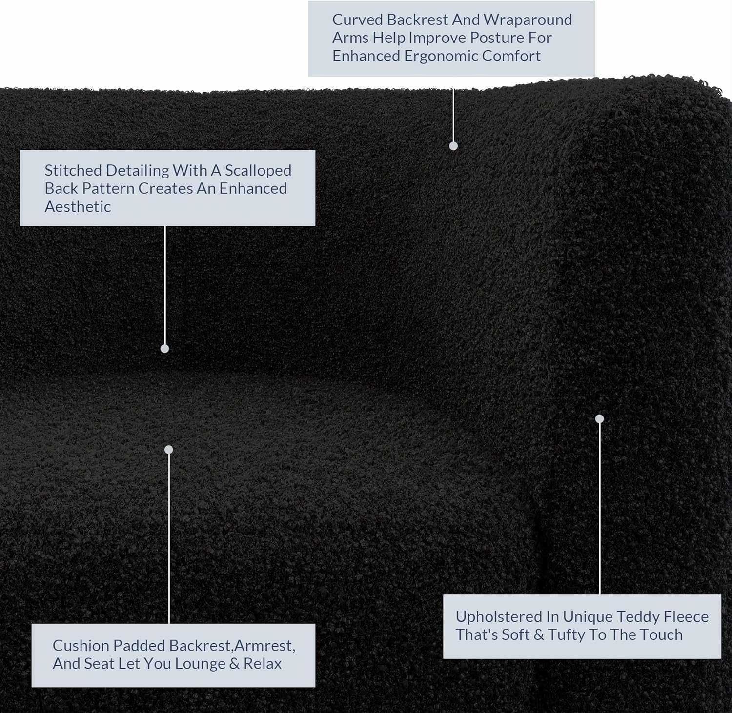 BELLEZE Living Room Chair, Teddy Polyester Accent Barrel Chair, Club Tub Sofa Chair for Bedroom, Corner Chair with Flared Legs and Cozy Soft Padding - Highland (Teddy Black)