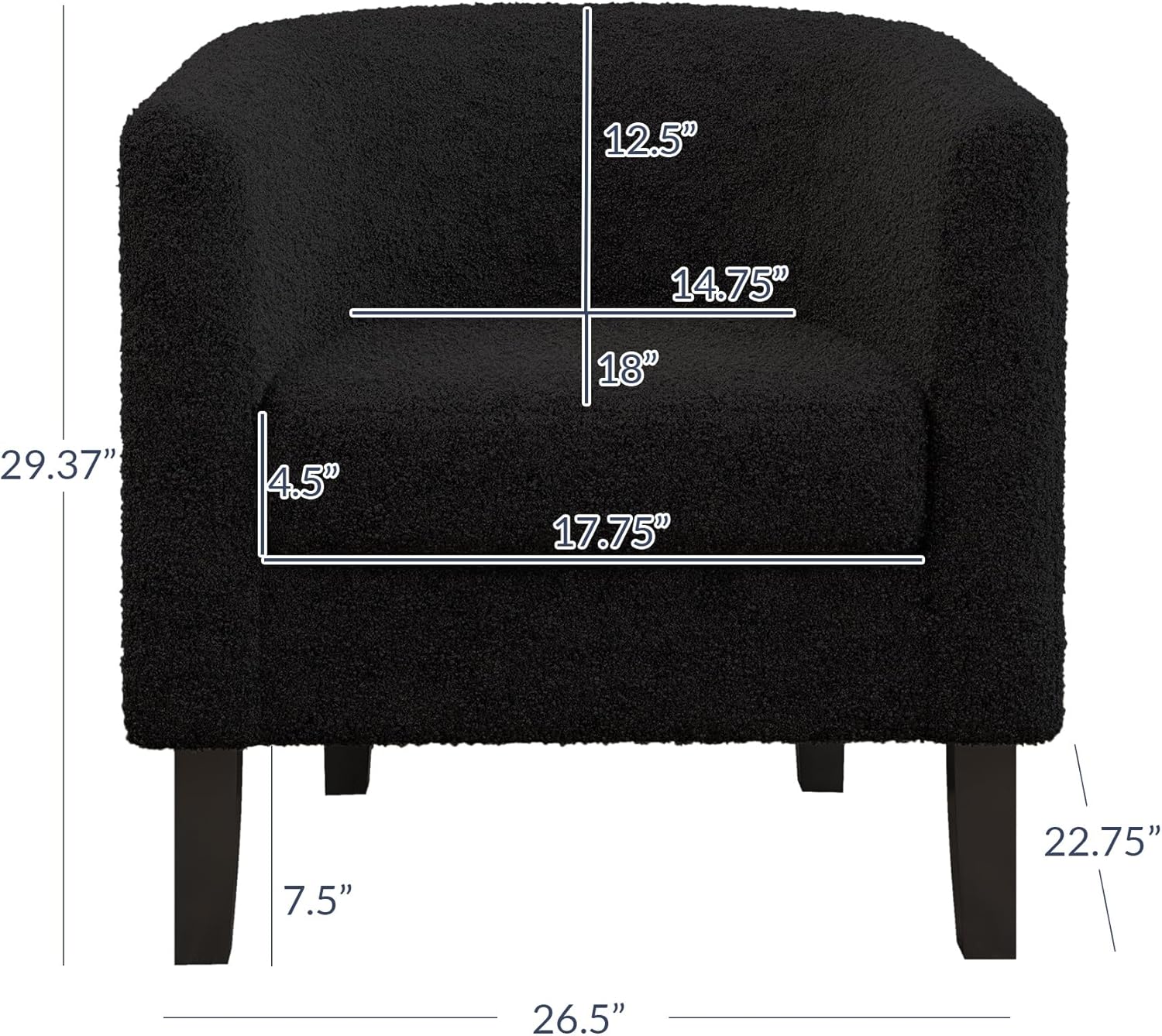 BELLEZE Living Room Chairs Set of 2, Teddy Polyester Accent Barrel Chairs, Club Tub Sofa Chairs for Bedroom, Corner Chairs with Flared Legs and Cozy Soft Padding - Highland (Teddy Black)