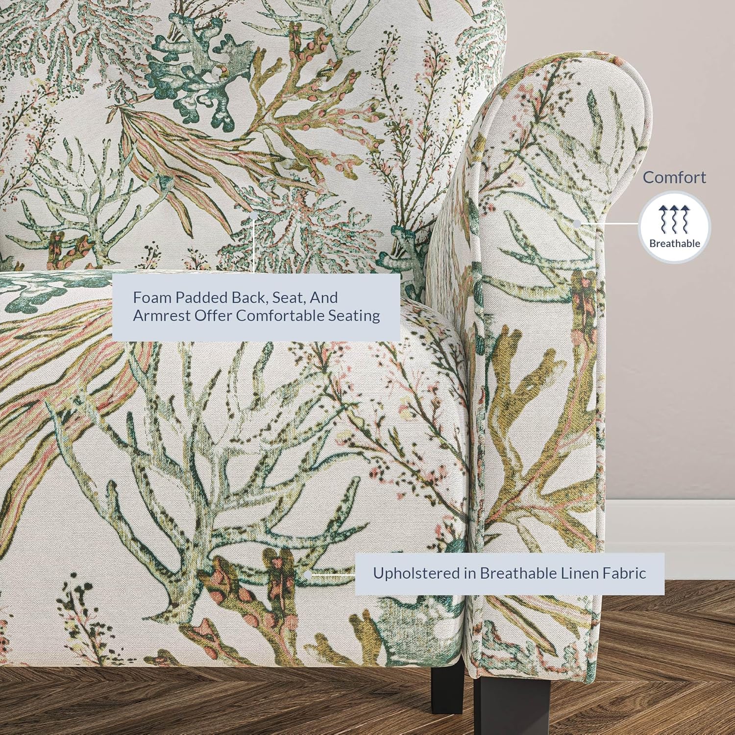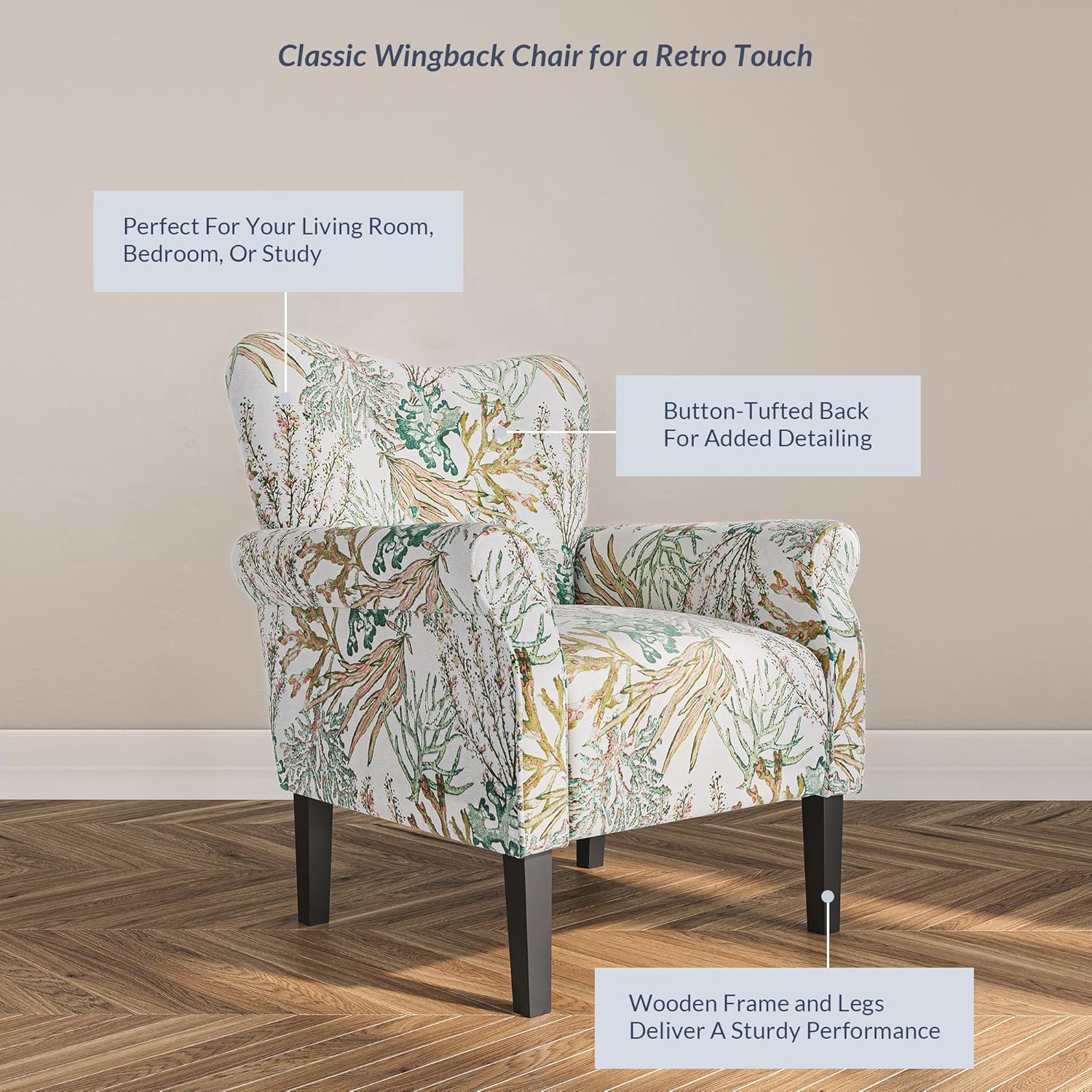 BELLEZE Modern Accent Chair for Living Room, High Back Linen Armchair with Wooden Legs, Upholstered Wingback Side Chair Padded Armrest Single Sofa for Living Room, Bedroom - Allston (Green Coral)
