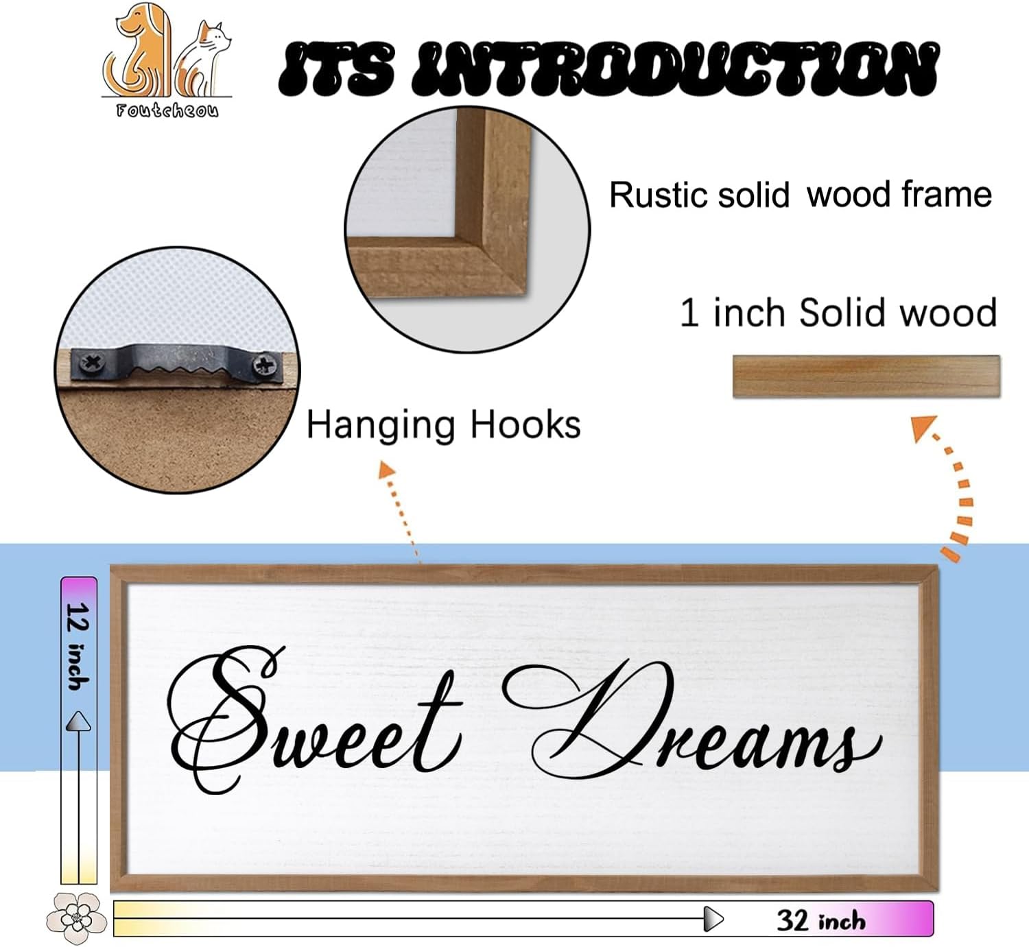 Sweet Dreams Wall Decor Above Bed 32x12 Inch Large Master Bedroom Hanging Wood Rustic Framed Farmhouse Sweet Dreams Sign Guest Room Aesthetic And Minimalist Over Bed Wall Art(Wood White)