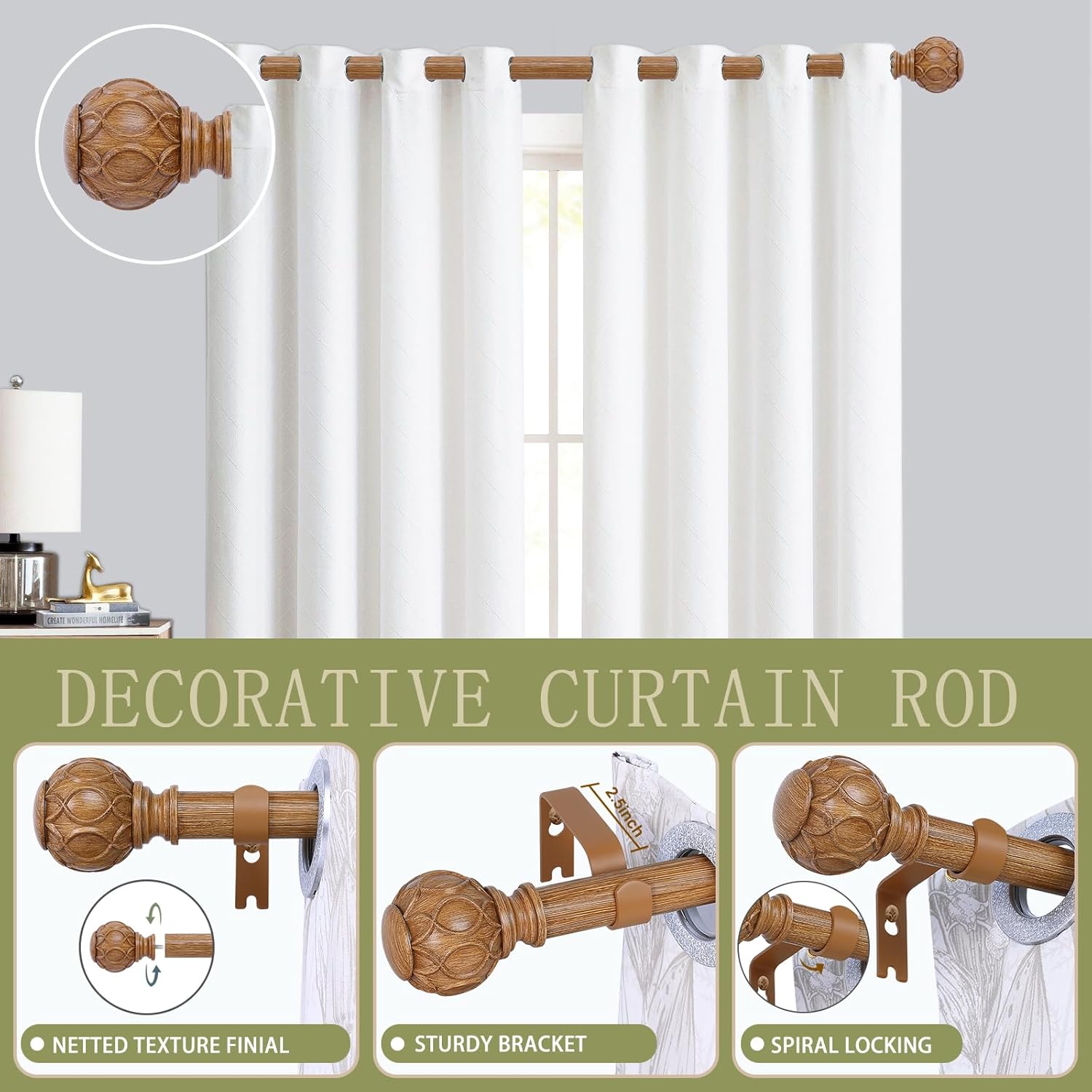 2 Pack Wood Curtain Rods for Windows 28 to 48 Inch(2.3-4Ft),1 Inch Adjustable Curtain Rod,Heavy Duty Curtain Rods,Wooden Netted Texture Drapery Rods,Single Window Curtain Rod 18-45",Brown Wood