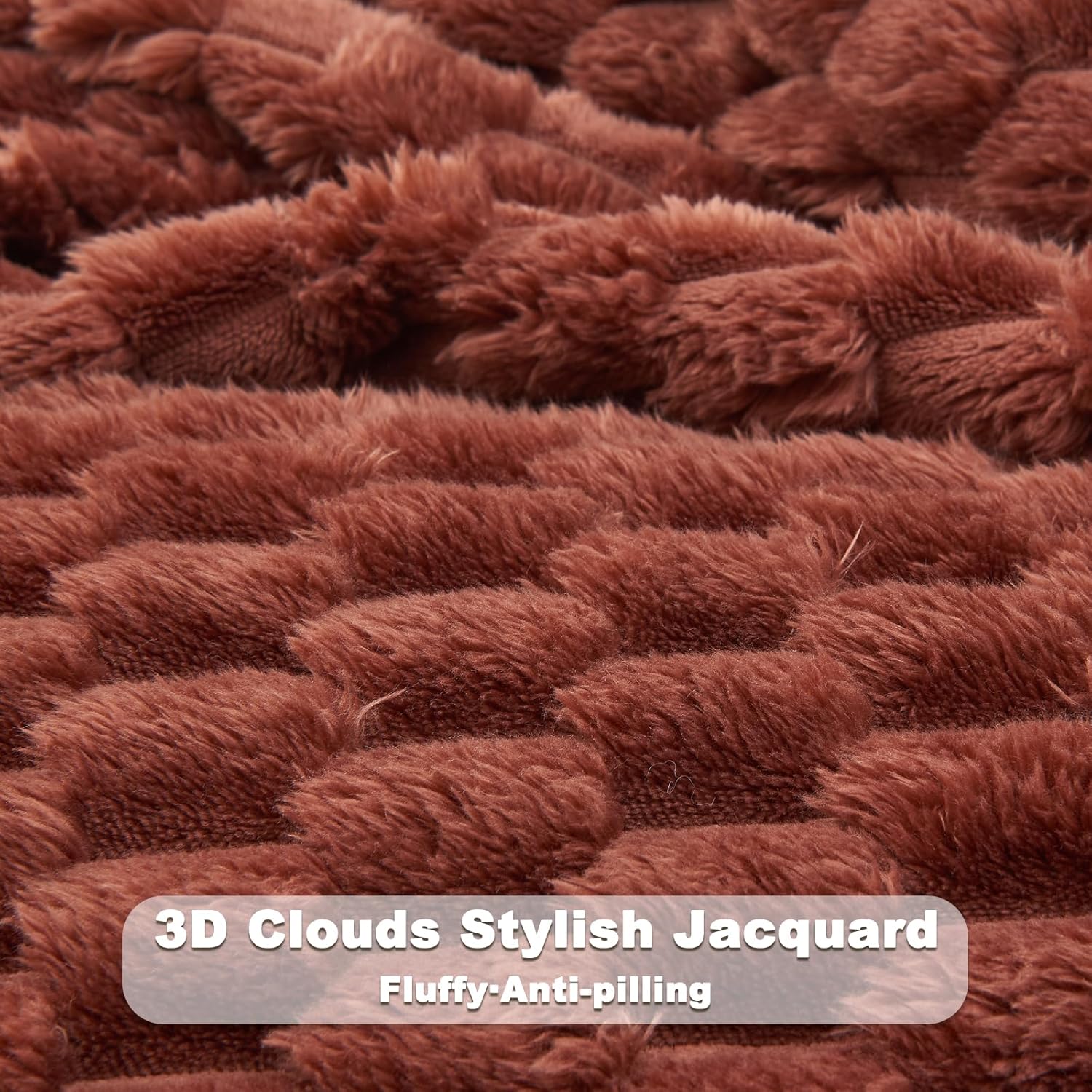 NEWCOSPLAY Super Soft Queen Blanket Coffee Premium Silky Flannel Fleece 3D Clouds Stylish Jacquard Lightweight Bed Blanket All Season Use 350GSM (Coffee, Queen(90"x90"))