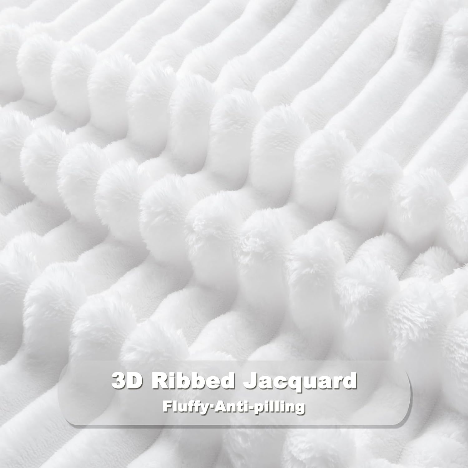 NEWCOSPLAY Super Soft Queen Blanket White Premium Silky Flannel Fleece 3D Ribbed Jacquard Lightweight Bed Blanket All Season Use (White Ribbed, Queen(90"x90"))