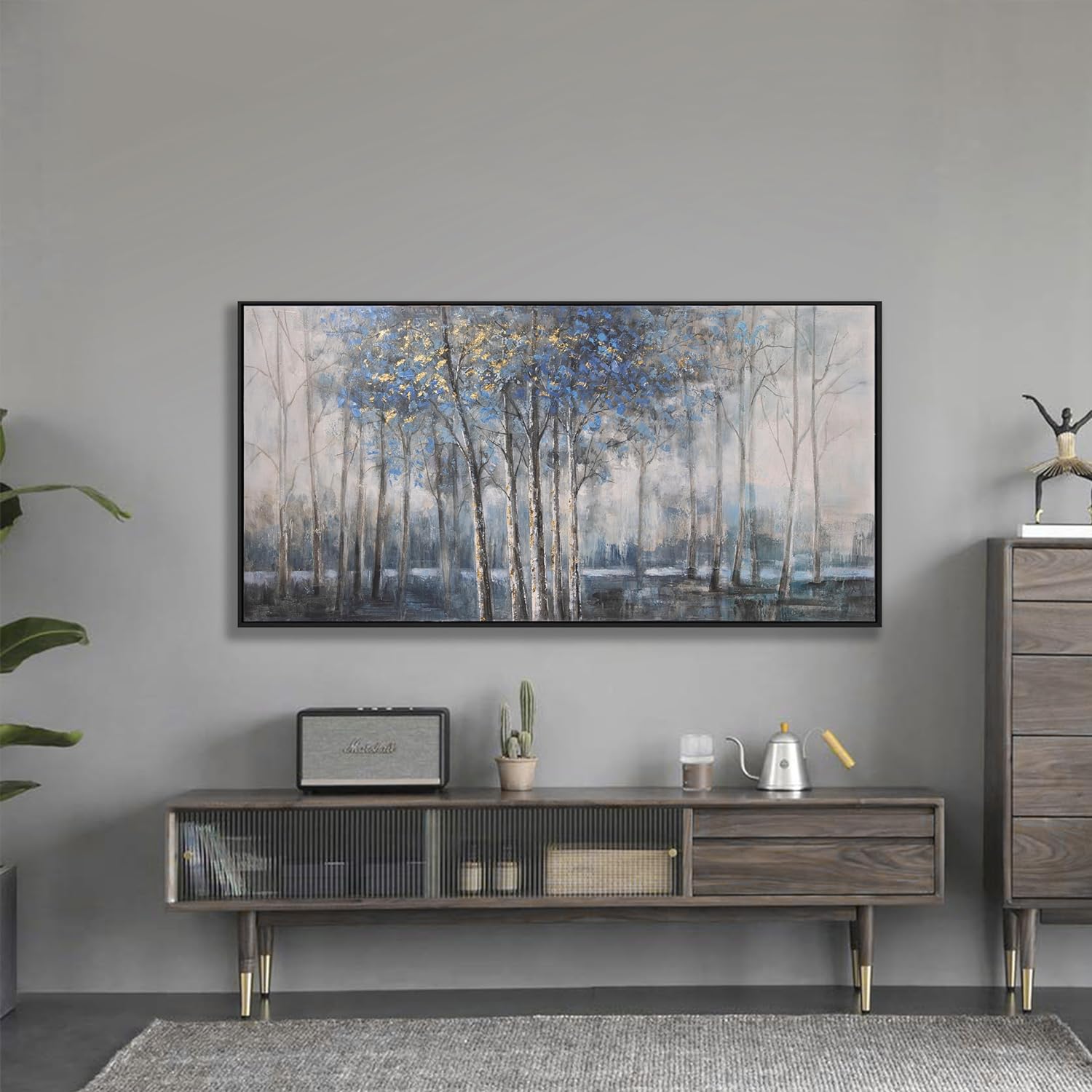 Abstract Canvas Wall Art Modern Abstract Artwork Canvas Prints Framed Canvas Picture Blue Embellishments Plant Grey Misty Forest Abstract Tree Contemporary Wall Art Bedroom Living Room Office