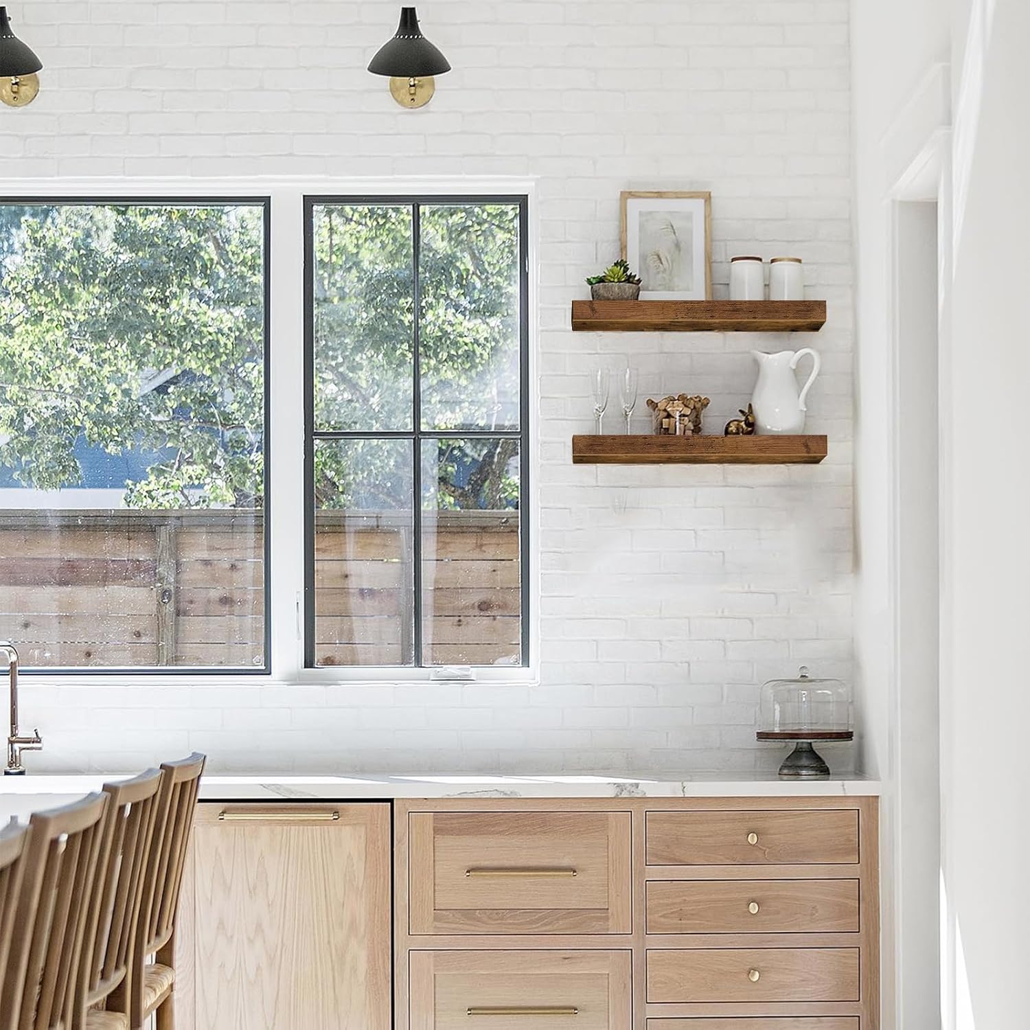 QEEIG Floating Shelves for Wall Bathroom Shelf Bedroom Kitchen Living Room Farmhouse Small Book Shelf 16 inch Set of 2, Brown (015-BN2)