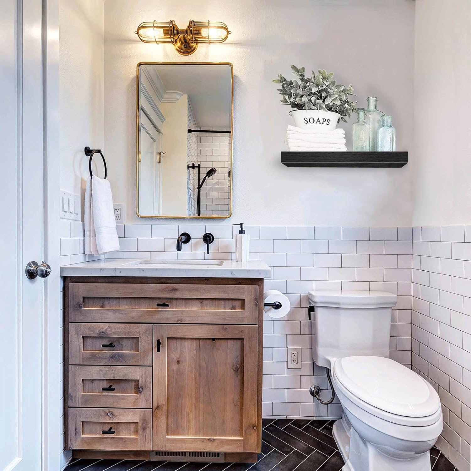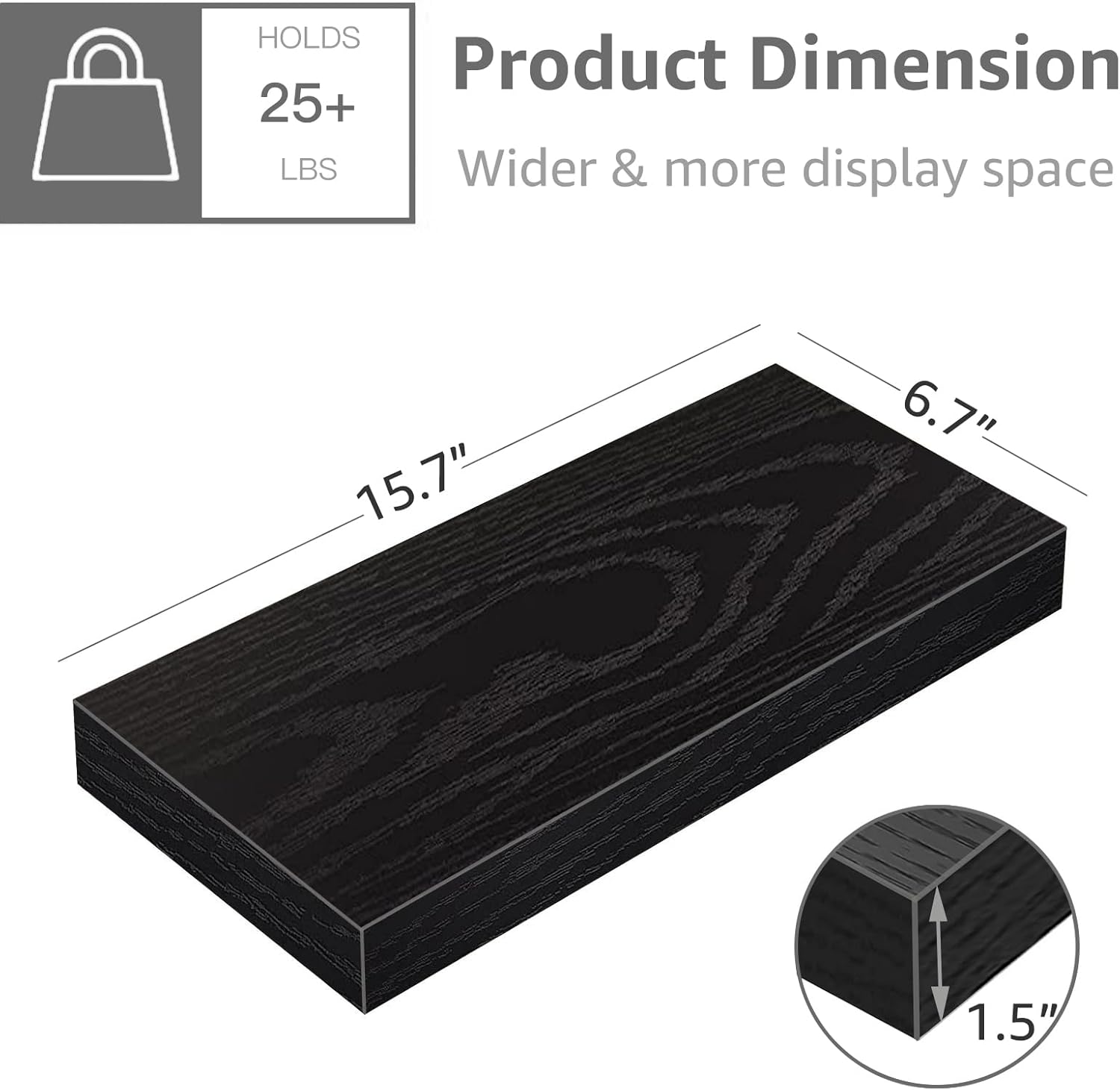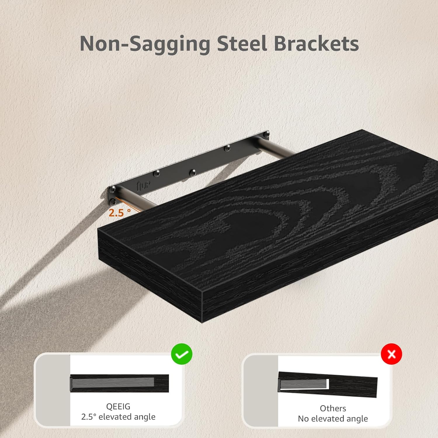 QEEIG Floating Shelf for Wall Bathroom Shelves Bedroom Kitchen Living Room Farmhouse Small Book Shelf 16 inch Set of 1, Black (015-B1)