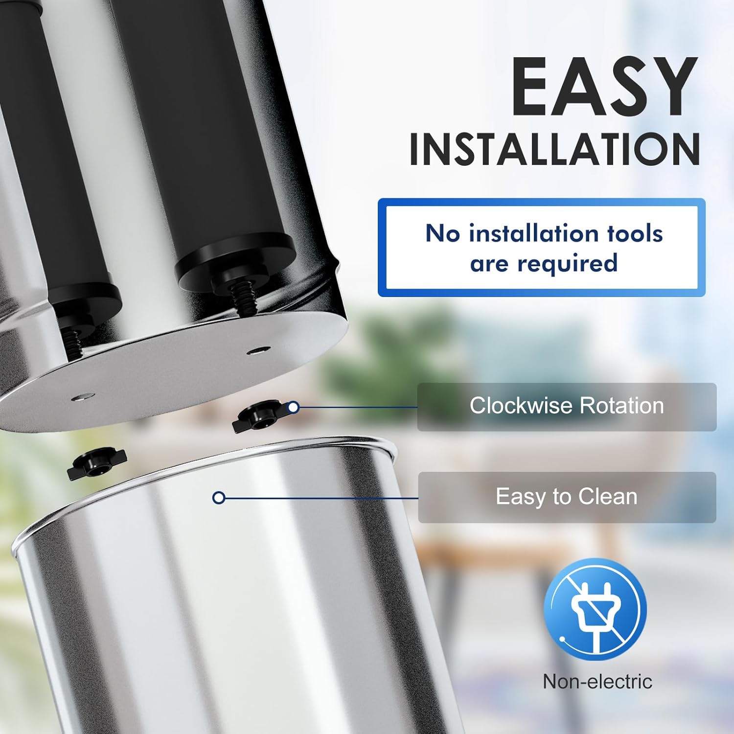 - [Advanced 2-Stage Filtration] Our composite filter is certified to NSF/ANSI 42, featuring a high-performance, 2-stage filtration technology. It combines a silver ion barrier and high-density activated carbon block, providing up to 99.9% removal efficiency for chlorine, rust, sediment, organic compounds, and heavy metals. Additionally, the filter meets NSF/ANSI 372 standards for lead-free materials, ensuring safe and reliable filtration for daily use.