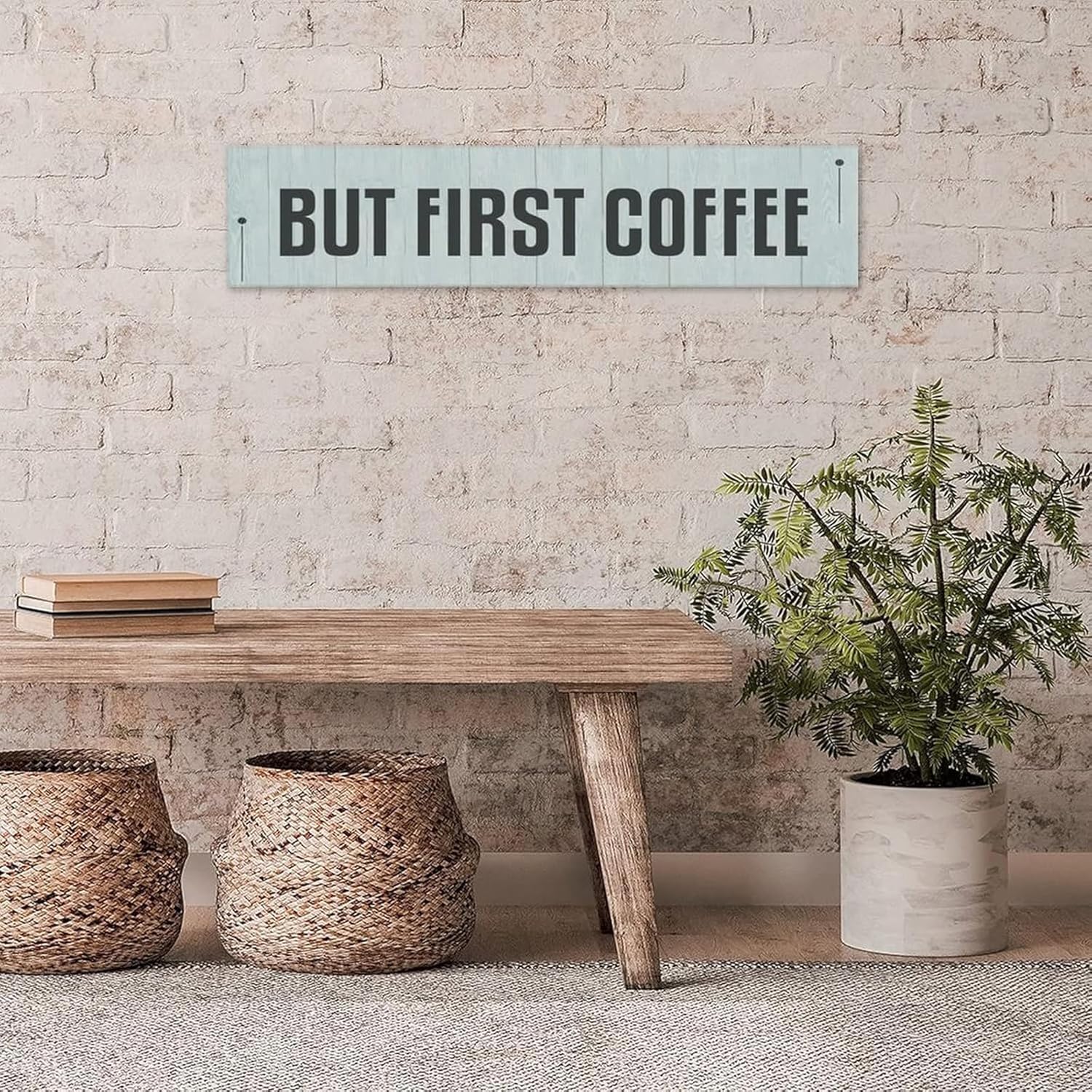 Generic Funny Wood Sign But First Coffee Rustic Wooden Hanging Sign Home Farmhouse Kitchen Wall Decoration 16 x 4 Inch
