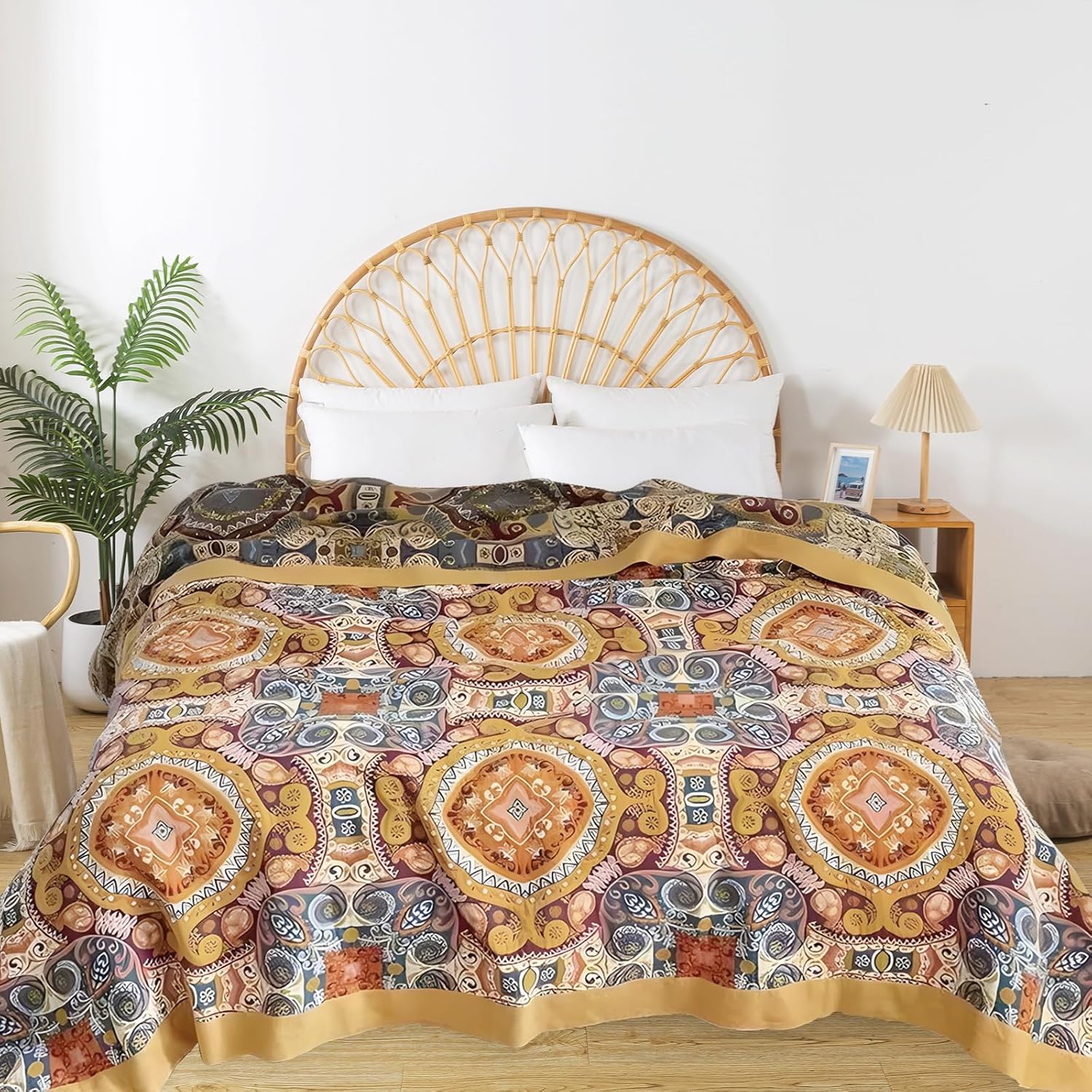 Boho Throw Blanket for Bed - 100% Pure Cotton Ultra Soft Rustic Quilt - Farmhouse Decor Bed Blankets, All Season Rustic Throw for Sofa Couch Chair(60"×80", Boho Flover)