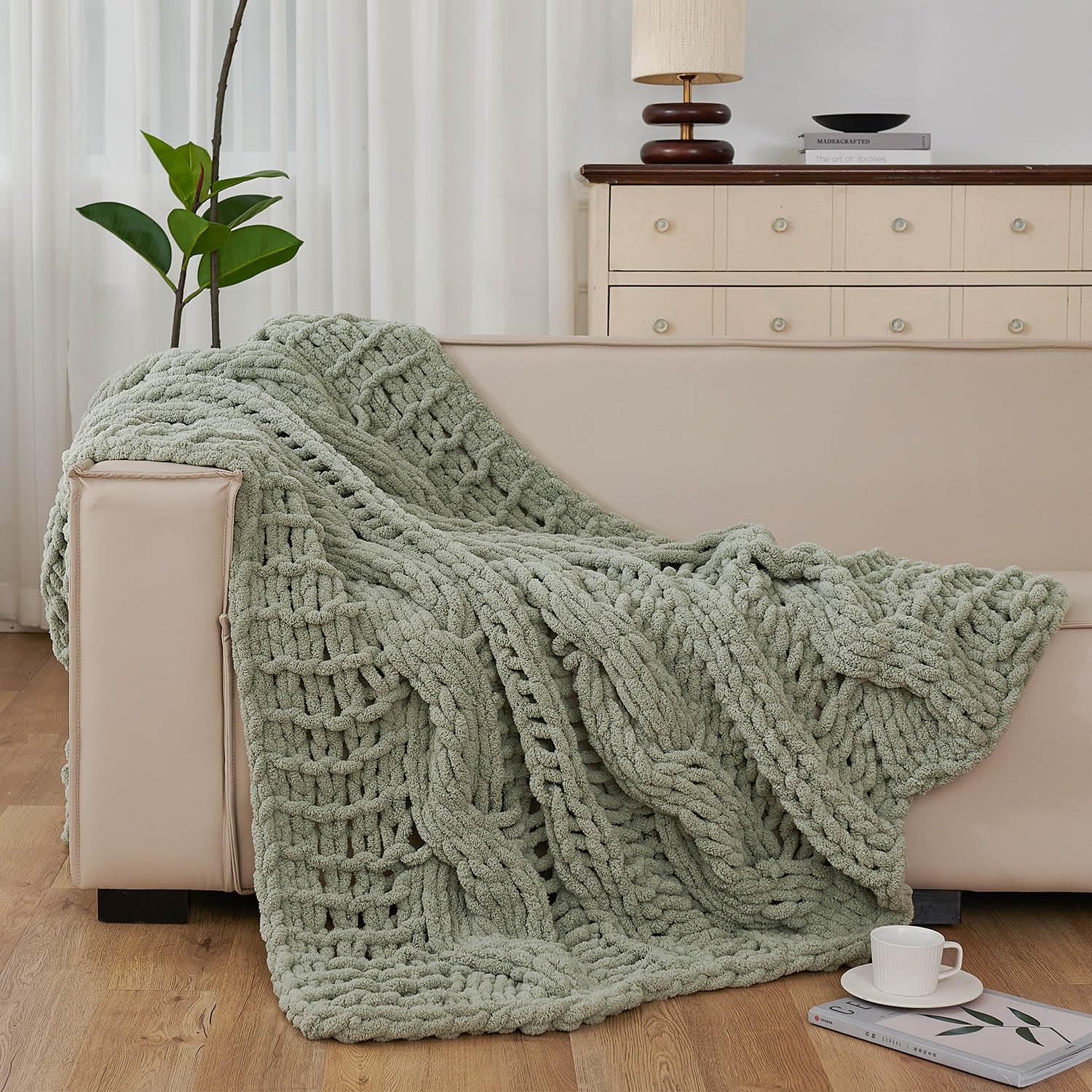 - COZY & TIMELESS HANDCRAFT: Our handmade chunky chenille throw blanket is designed to last a long time. The stylish and exquisite handcraft pattern makes our throw blanket a great home décor accent that adds a touch of both modern and classic to your space, creating a timeless feel in your room. Our Handmade Throw is perfect to snuggle up on a couch, reading in bed, watching show, or enjoying cozy time with your spouse, kids, or pets. It's a must-have throw blanket!