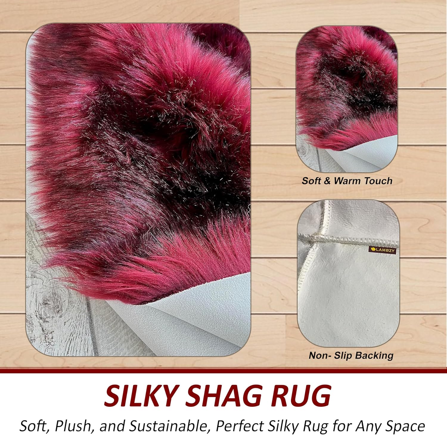 LAMBZY Faux Sheepskin Super Soft Hypoallergenic Free Shape Silky Shag Rug, Luxury Shaggy Plush Carpet for Bedrooms Living Kids Room Sofa Rugs (Burgundy, Sexto 6 Pelts 6'x6')