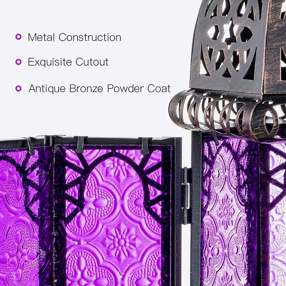 - CONSUMMATE WORKMANSHIP - Inspired by Moroccan hookah lounges and Turkish bazaars, this alluring designed glass hanging lantern lends a touch of worldly flair to your aesthetic. Made from iron in a bronze finish, this exotic design strikes a hexagonal prism silhouette with intricate cutouts, scroll openwork, and a cylindrical chimney roof. Just add a tealight candle or flameless LED and this piece radiates light through textured glass for a calming glow.