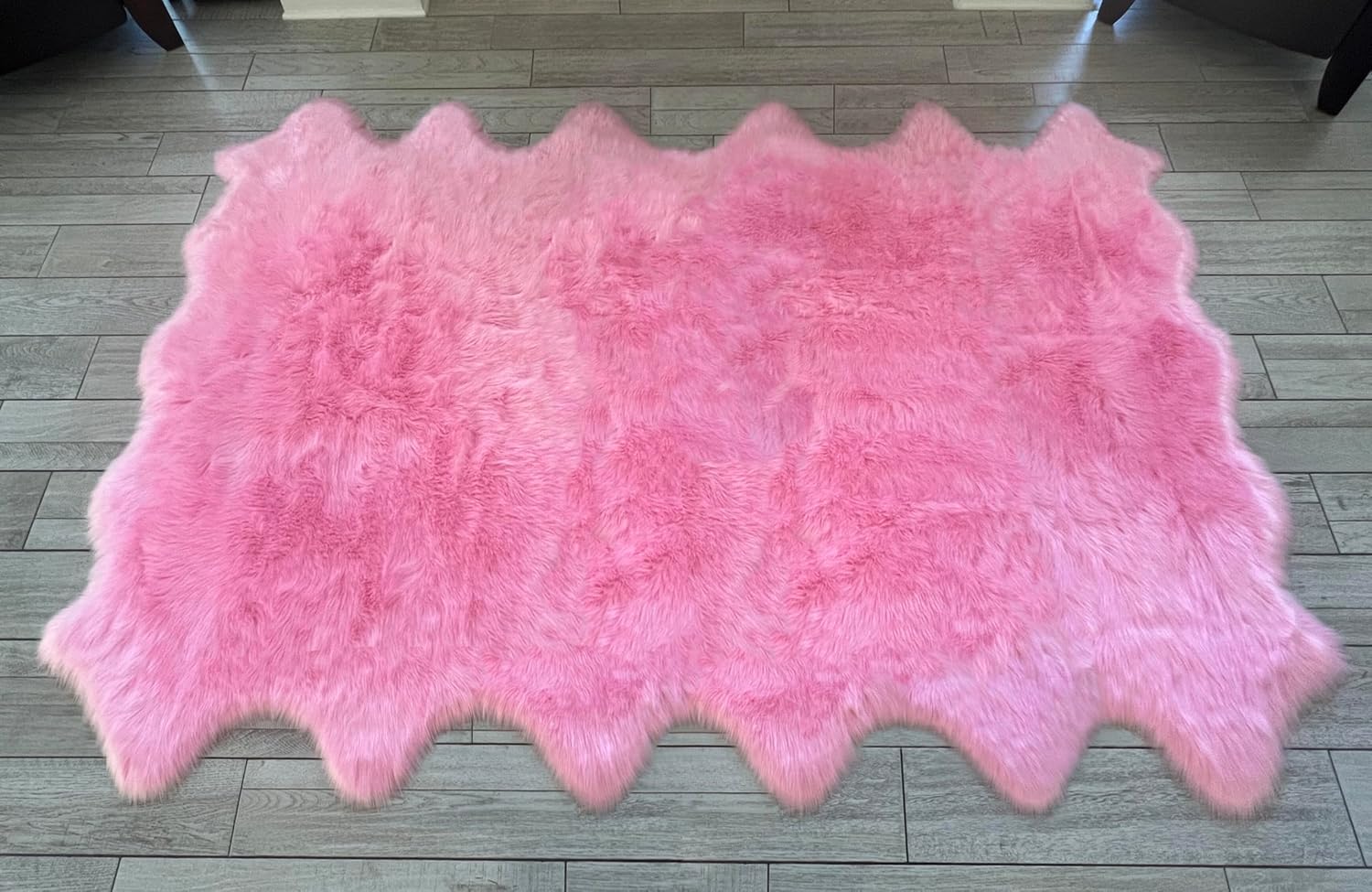 LAMBZY Faux Sheepskin Super Soft Hypoallergenic Free Shape Silky Shag Rug, Luxury Shaggy Plush Carpet for Bedrooms Living Kids Room Sofa Rugs (Pink, Duo Decto 12 Pelts 6'x12')