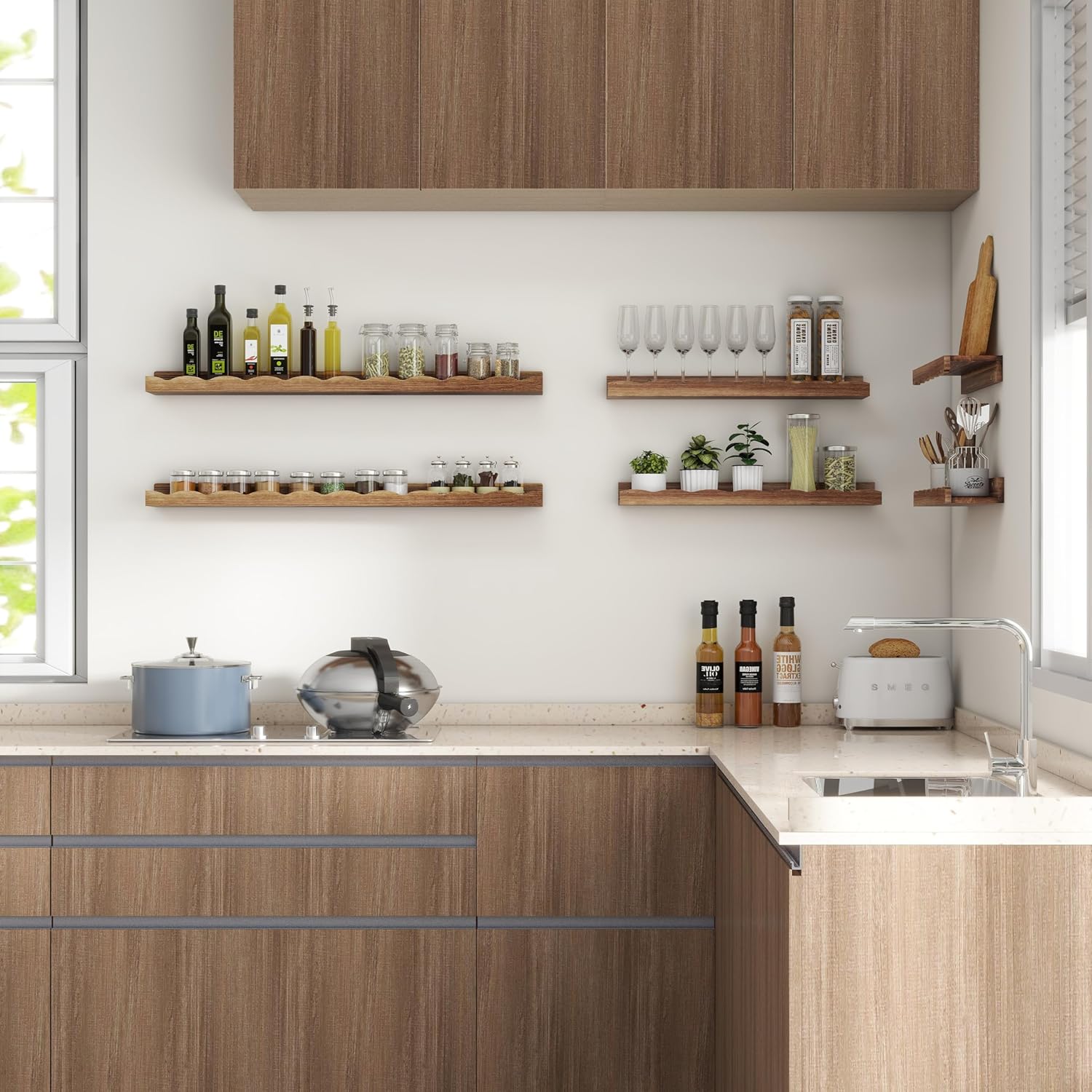 - ăSolid Pine Wood ShelvesăCrafted from sturdy pine wood, our floating shelves offer a more environmentally-friendly option. Each board preserves its natural grain and color, ensuring a unique look for every shelf. Not only do these shelves provide practical storage solutions, but they also enhance the overall appearance of your room, adding a touch of elegance to any space.