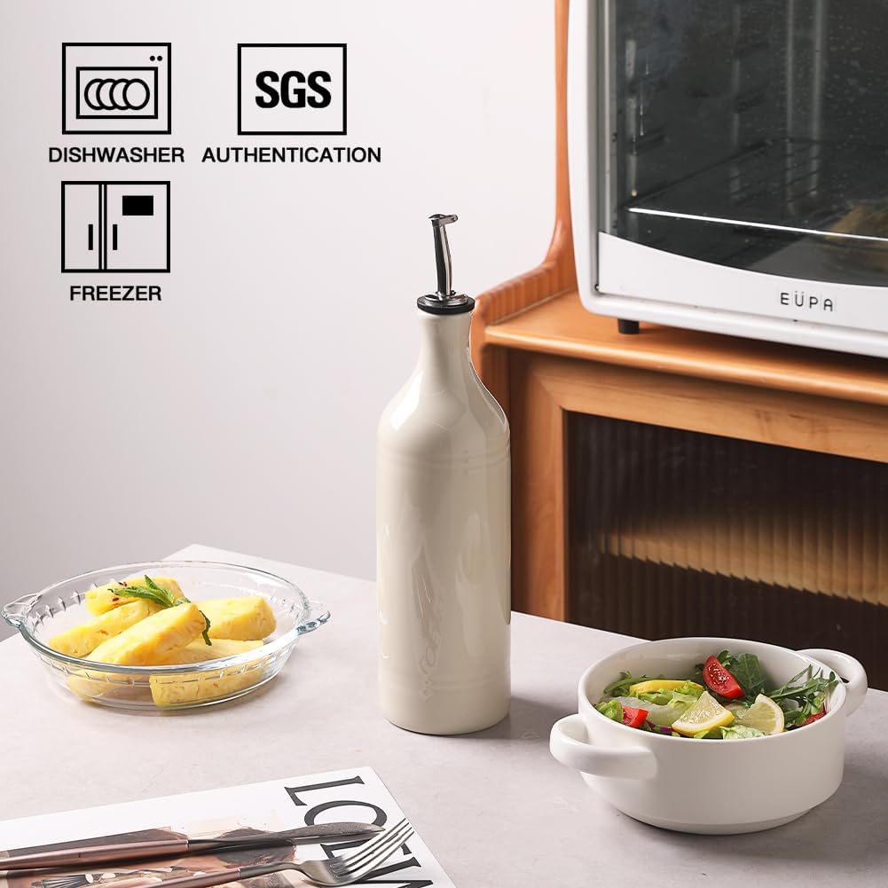 Sweejar Large Ceramic Olive Oil Dispenser Bottle, Opaque Oil Cruet Protects Oil to Reduce Oxidation, Storage Oil, Vinegar, Soy Sauce & Other Liquids, Pack of 1, 24 Fl Oz (Beige)