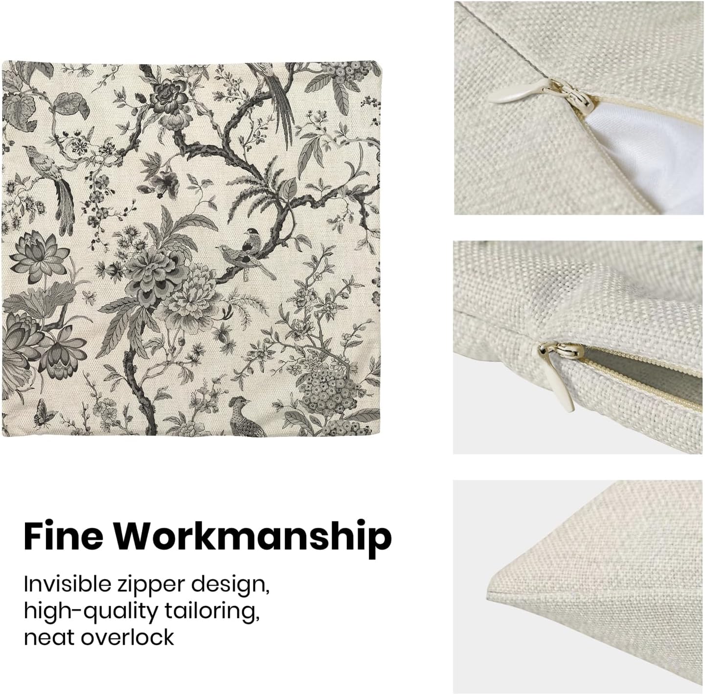 - 【Spring Pillow Covers】 Our Chinoiserie floral throw pillow covers 18x18 inch are made of excellent breathable polyester cotton fabric. The black and white floral decorative pillow covers is durable, soft and skin-friendly. The plant outdoor pillow covers adopt exquisite edging technology and four sides of our floral pillow covers are sewn firmly, which is not easy to open the line.