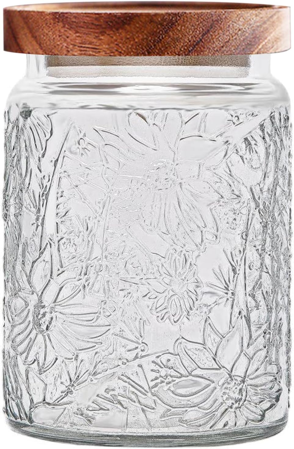 - Vintage Design: Daisy, Sunflower, Stars, Carved flowers, window carving, The glass jars with airtight lid have a vintage cameo inspired by nature and ancient cultures. The glass jars with airtight lid are inspired by nature and ancient cultures, and reflect the charm of light and shadow on the glass, which not only makes your kitchen neat, but also very elegant