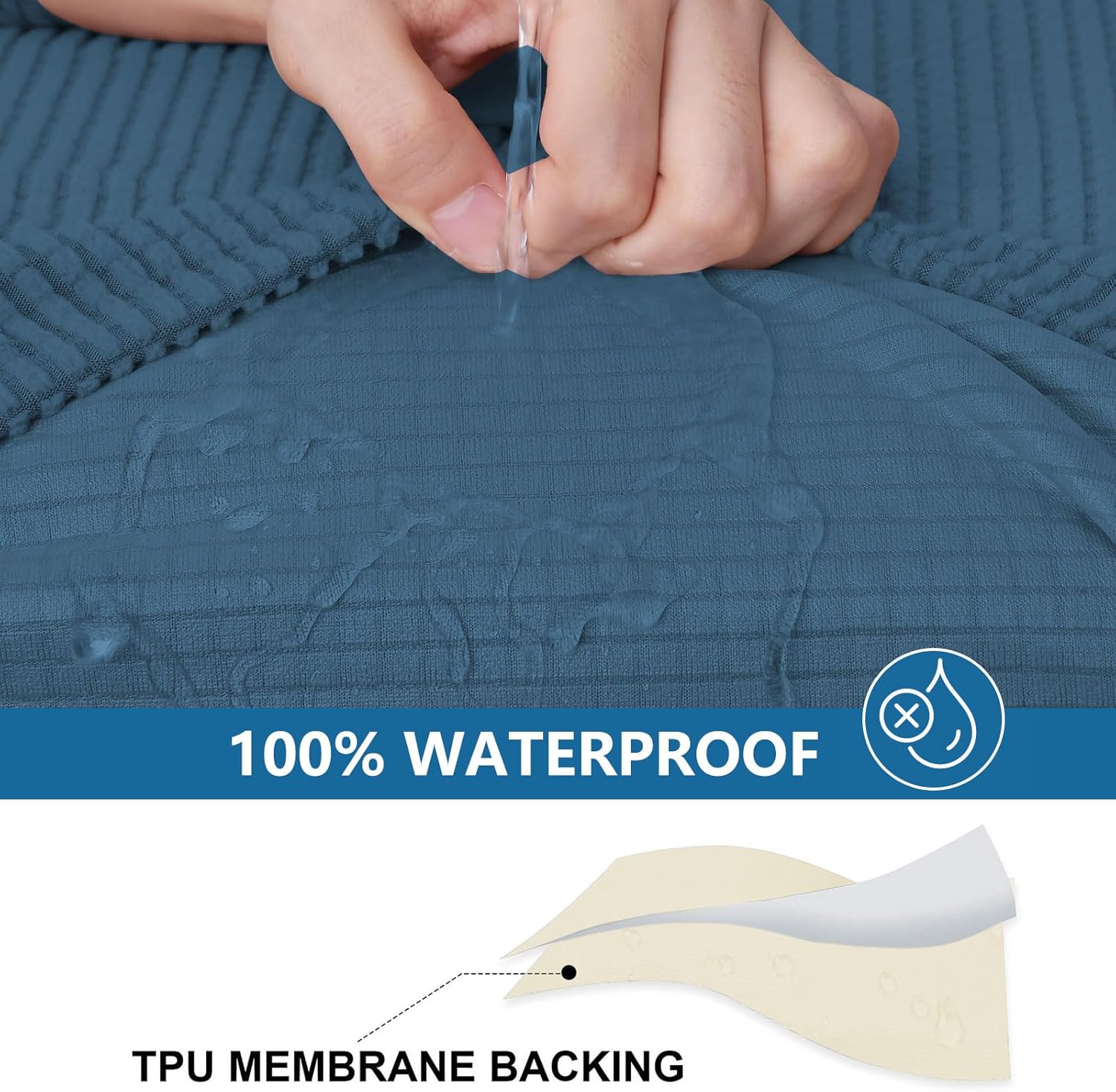 - [100% Waterproof Fabric] The back of the couch seat cover has a waterproof layer made of TPU. Great on against spills, pets' fur, stains, and normal wear and tear or any possible mess and accidents.