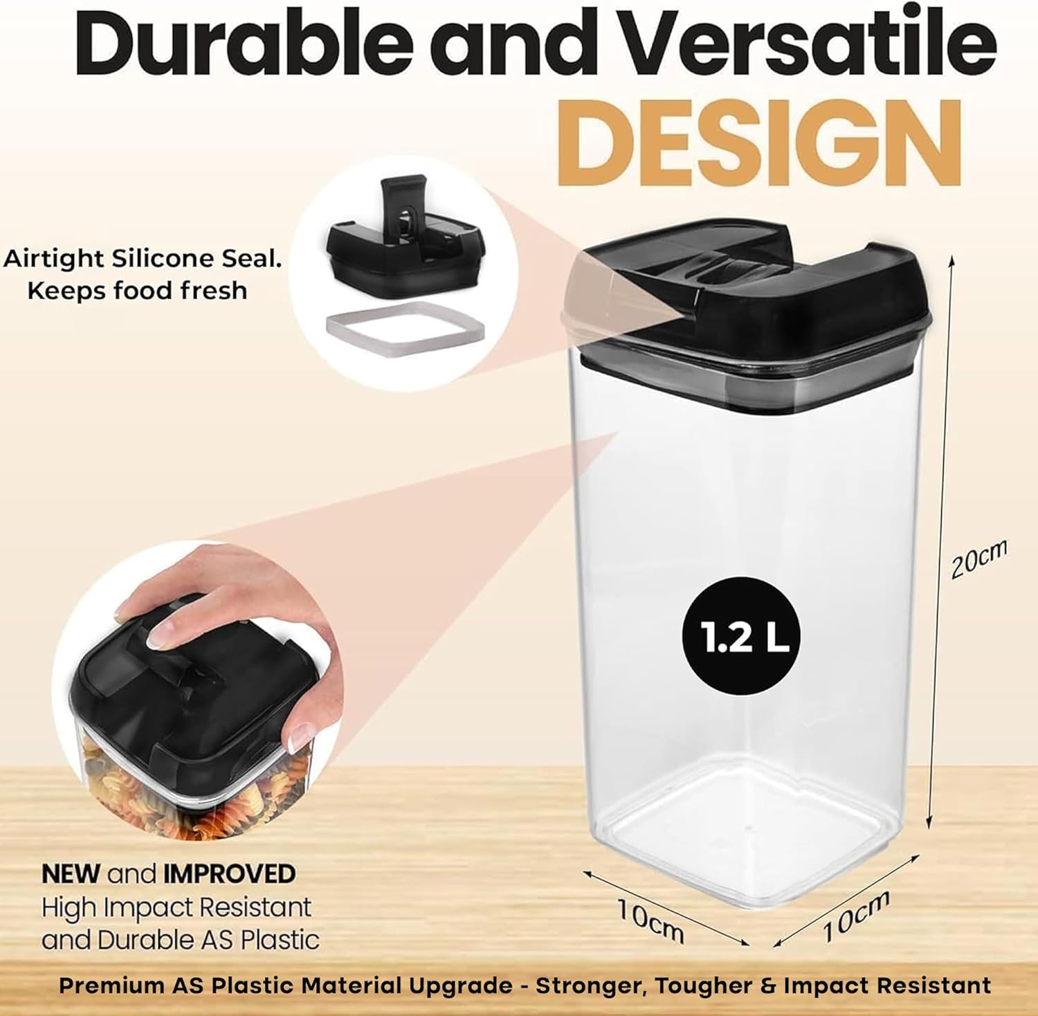 - 【 HIGH-QUALITY BPA-FREE PLASTIC WITH PREMIUM AS MATERIAL UPGRADE 】Made from premium, BPA-free plastic, these food storage containers and pantry storage containers offer a durable, reliable solution for any kitchen. Now further enhanced with advanced AS plastic instead of standard PS, they provide superior durability, toughness, and impact resistance. This upgrade ensures your containers withstand drops, resist cracks, and keep your food safely stored with confidence—delivering long-lasting quality without changing container size or capacity.