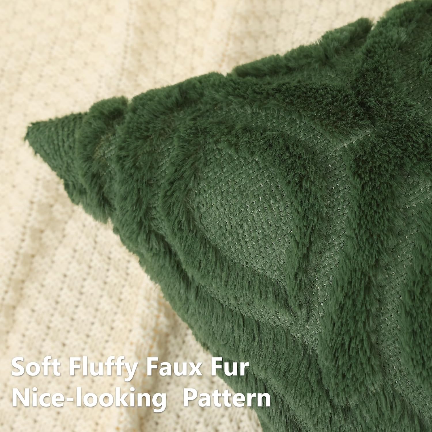 decorUhome Throw Pillow Covers 20x20 Inch Set of 2, Soft Plush Decorative Faux Fur Forest Elf Solid Couch Pillow Covers, Accent Farmhouse Neutral Square Euro Pillow Cases for Sofa Bed Living Room