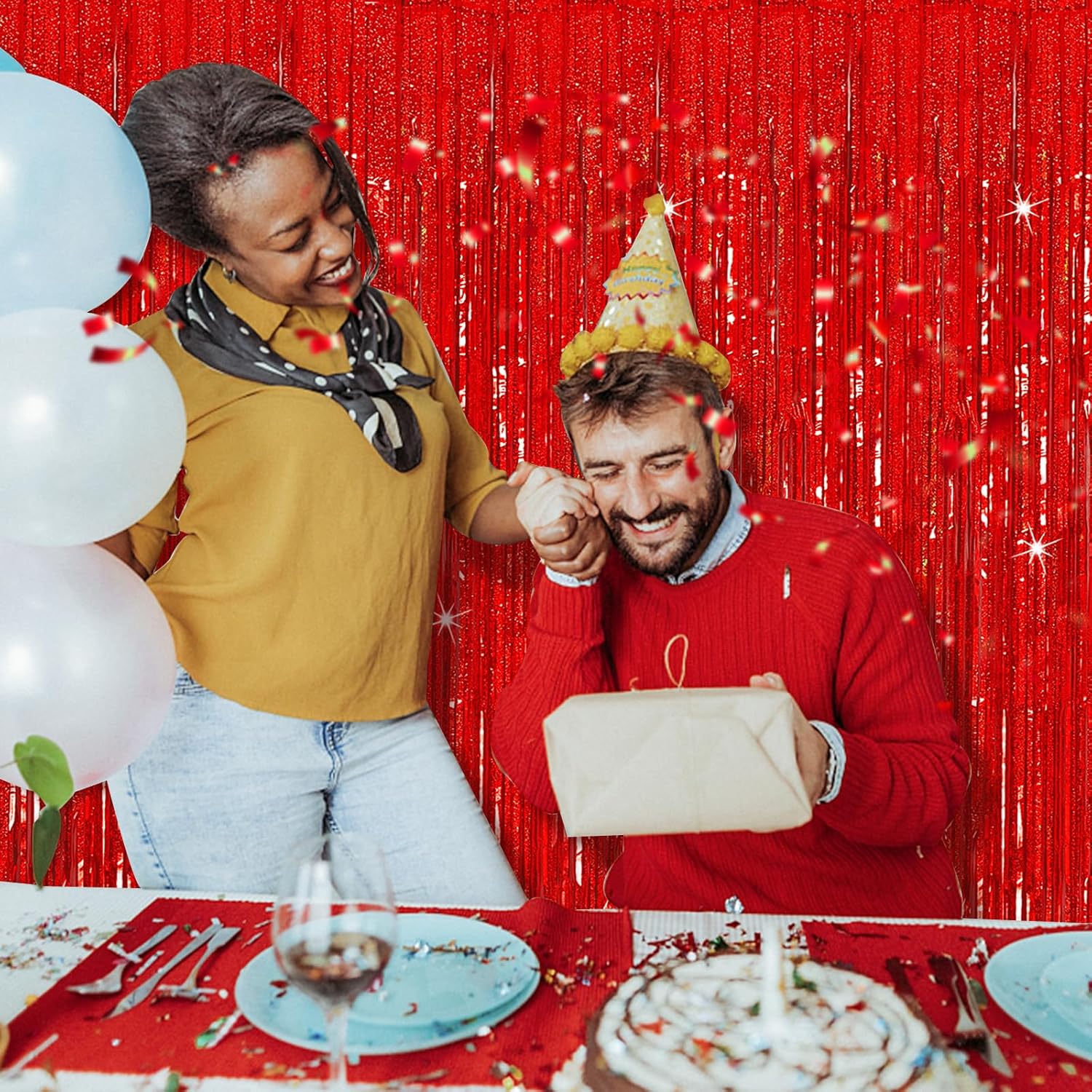 3 Pack Red Streamers Party Backdrop Christmas Decorations Foil Fringe Backdrop Curtains Carnival Casino Theme Birthday New Year Holiday Celebration Bachelorette Party Decorations Supplies