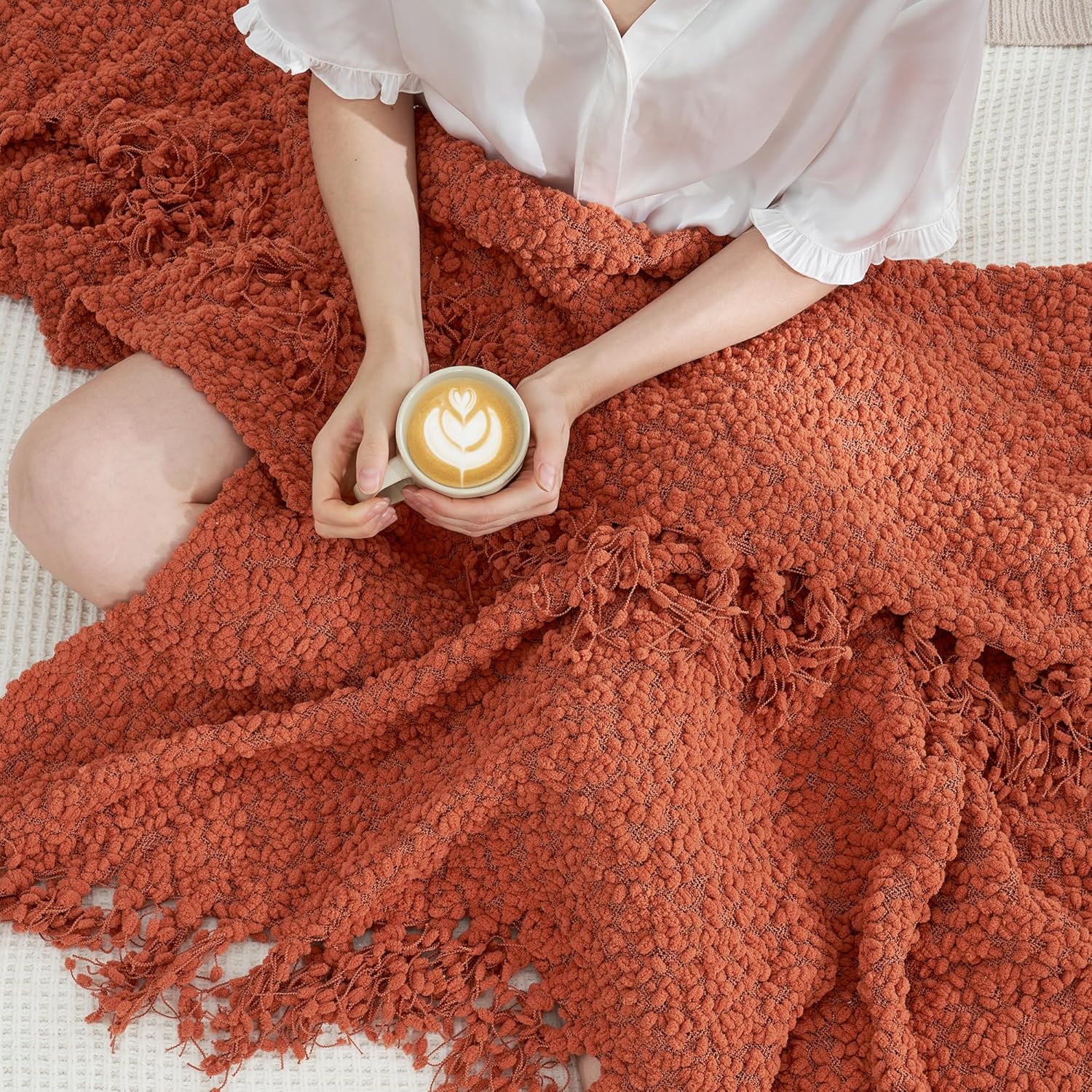Amélie Home Knit Throw Blanket with Tassels for Couch, Luxury Boho Throw Blanket for Summer Orange, 50"x60"