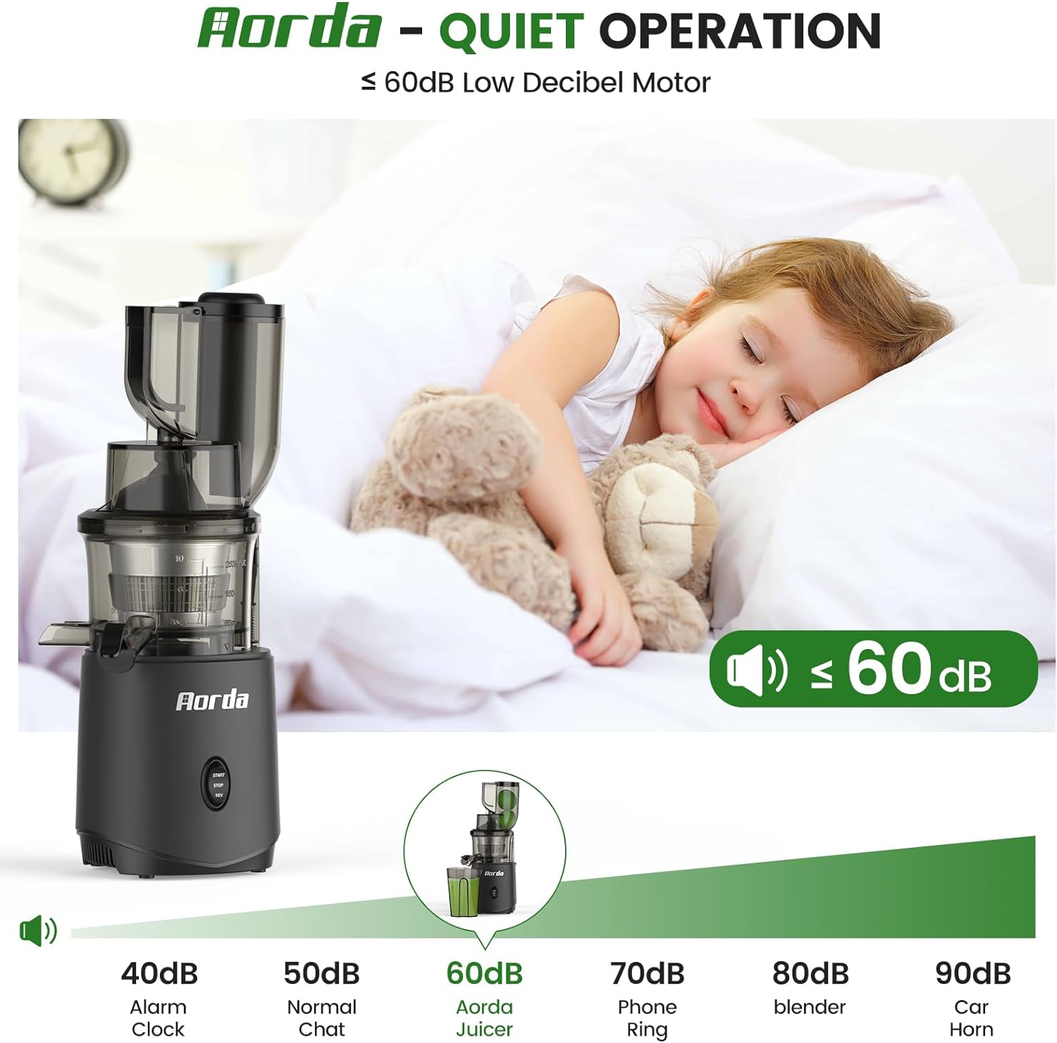 - Quiet Yet Powerful Operation: Experience unmatched juicing efficiency with our slow juicer cold press. It integrates anti-clogging technology and a robust 200W motor, ensures continuous, smooth operation, increase juice yield and decrease waste, making every drop count. It operates at a whisper-quiet 65dB, allowing you to make early morning juices without disturbing the peace of your home.