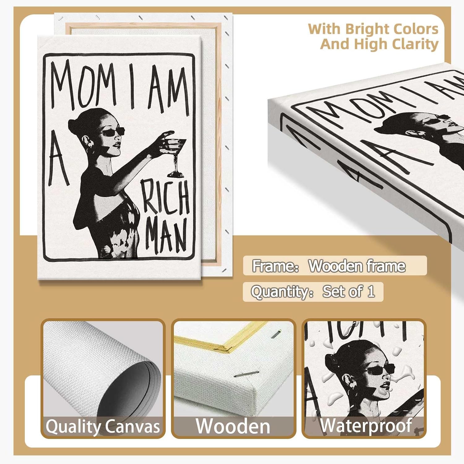 Mom I Am A Rich Man Aesthetic Retro Music Goblet Poster Feminist canvas Wall Art Vintage Bar Cart Wall Decor Preppy Dorm Decor Unique Wall Art prints painting 24x36in Framed