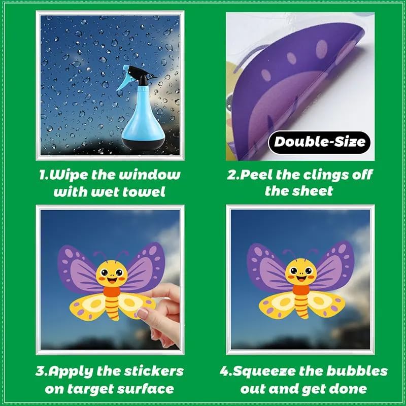 - [Vibrant Decor:] This set includes multiple beautiful cling window stickers featuring flowers, butterflies and other spring/summer motifs for an instant decorative pop of color and nature-inspired charm.