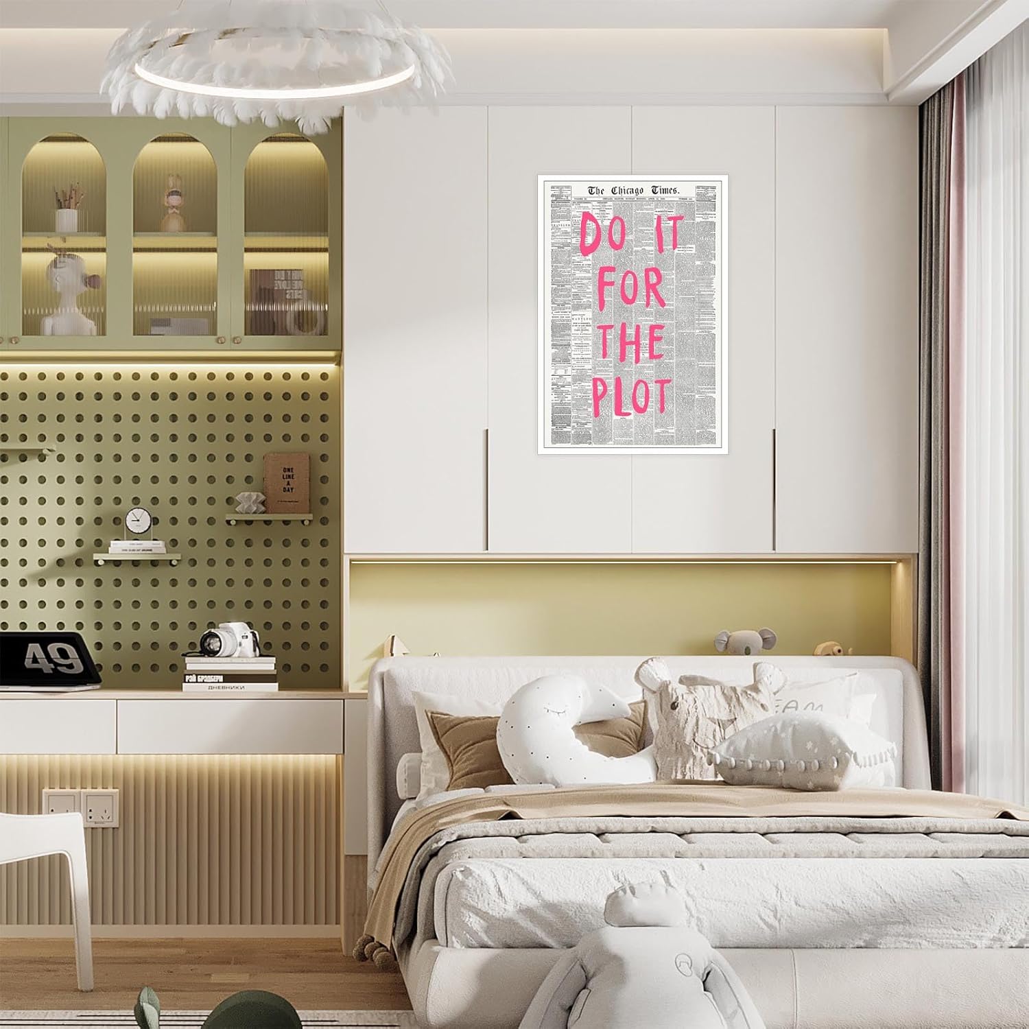 Liyark Retro Black And White Chicago Newspaper Poster Pink Trendy Preppy Apartment Art Motivational Affirmation Do It For The Plot Prints For Home Bedroom Living Room Wall Decor 12x16in Unframed