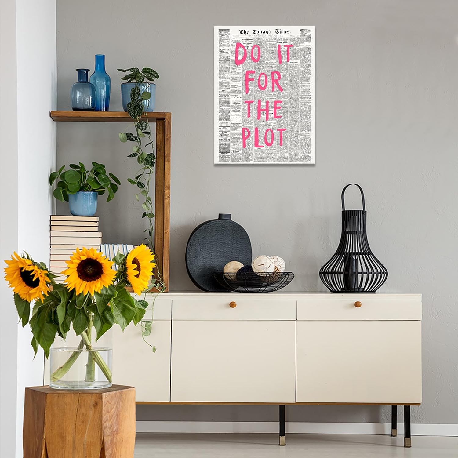 Liyark Retro Black And White Chicago Newspaper Poster Pink Trendy Preppy Apartment Art Motivational Affirmation Do It For The Plot Prints For Home Bedroom Living Room Wall Decor 16x24in Framed
