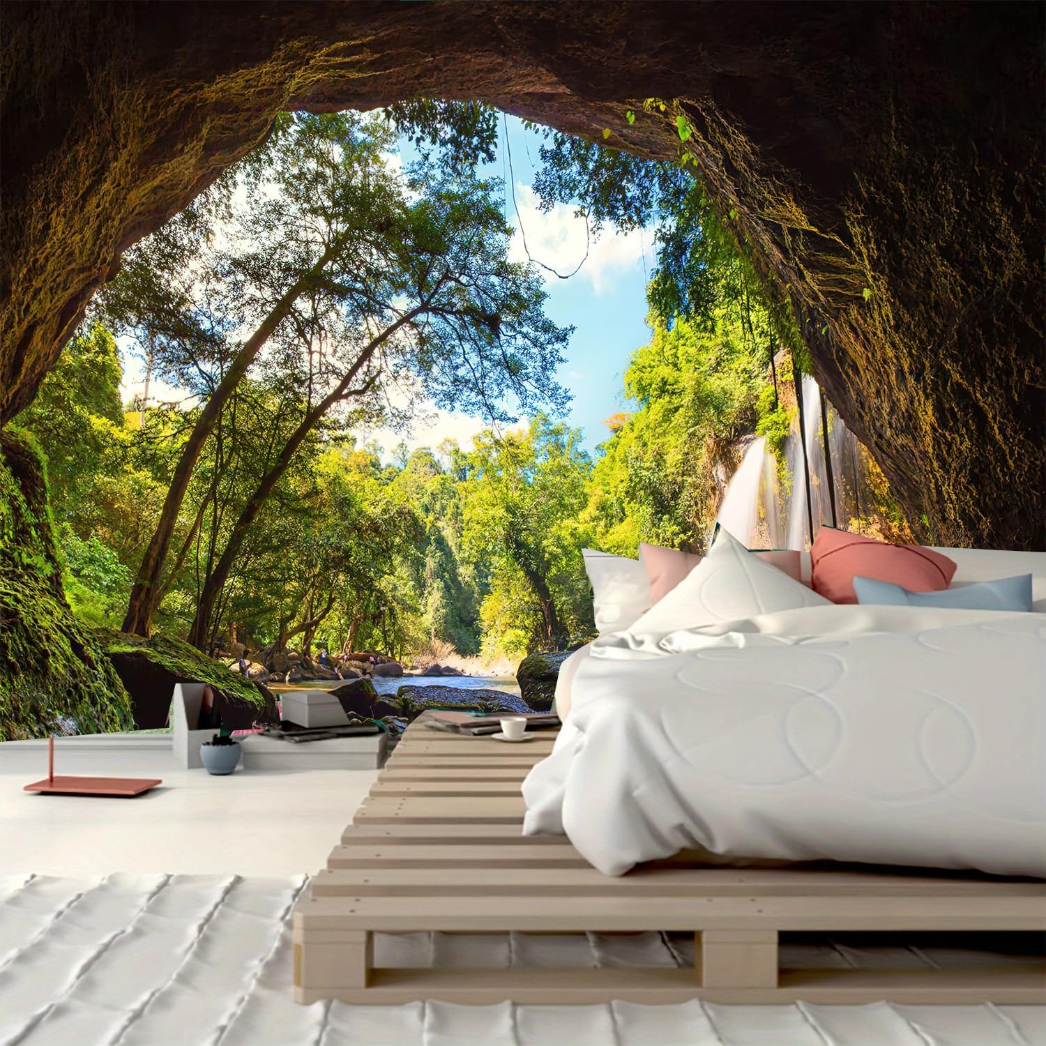 FENDROM Green Misty Forest Tapestry Wall Hanging Nature Mountain Cave Landscape Tapestry Waterfall River Tapestries for Bedroom Living Room Dorm Decor