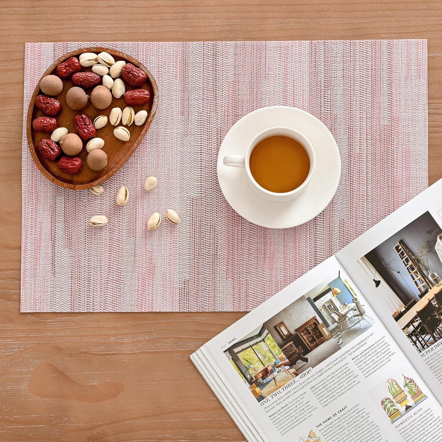 Leetaltree Misty Rose Placemats Set of 6 - Heat Resistant Non-Slip Place mats for Dining Table, Washable Durable PVC Vinyl Woven Table Mats(Misty Rose, 6)